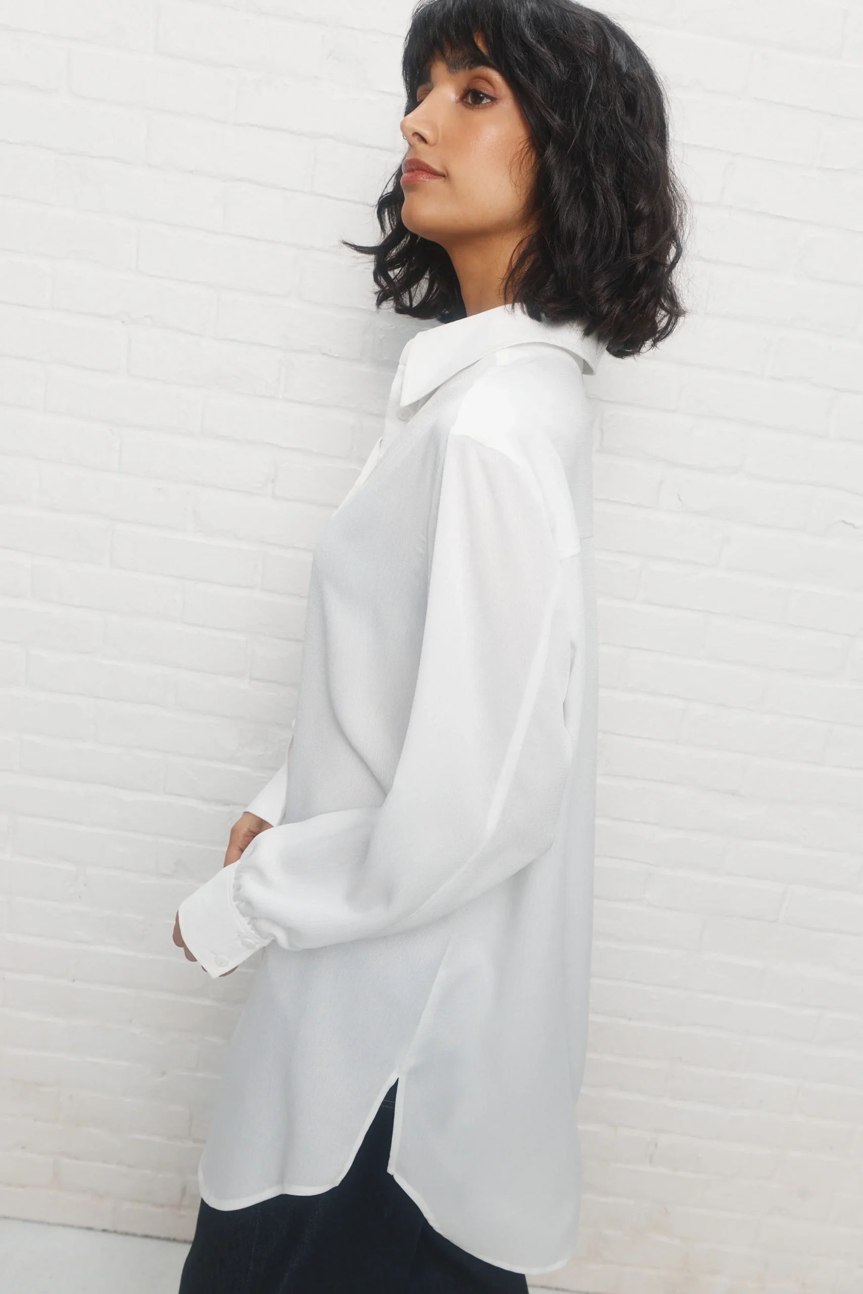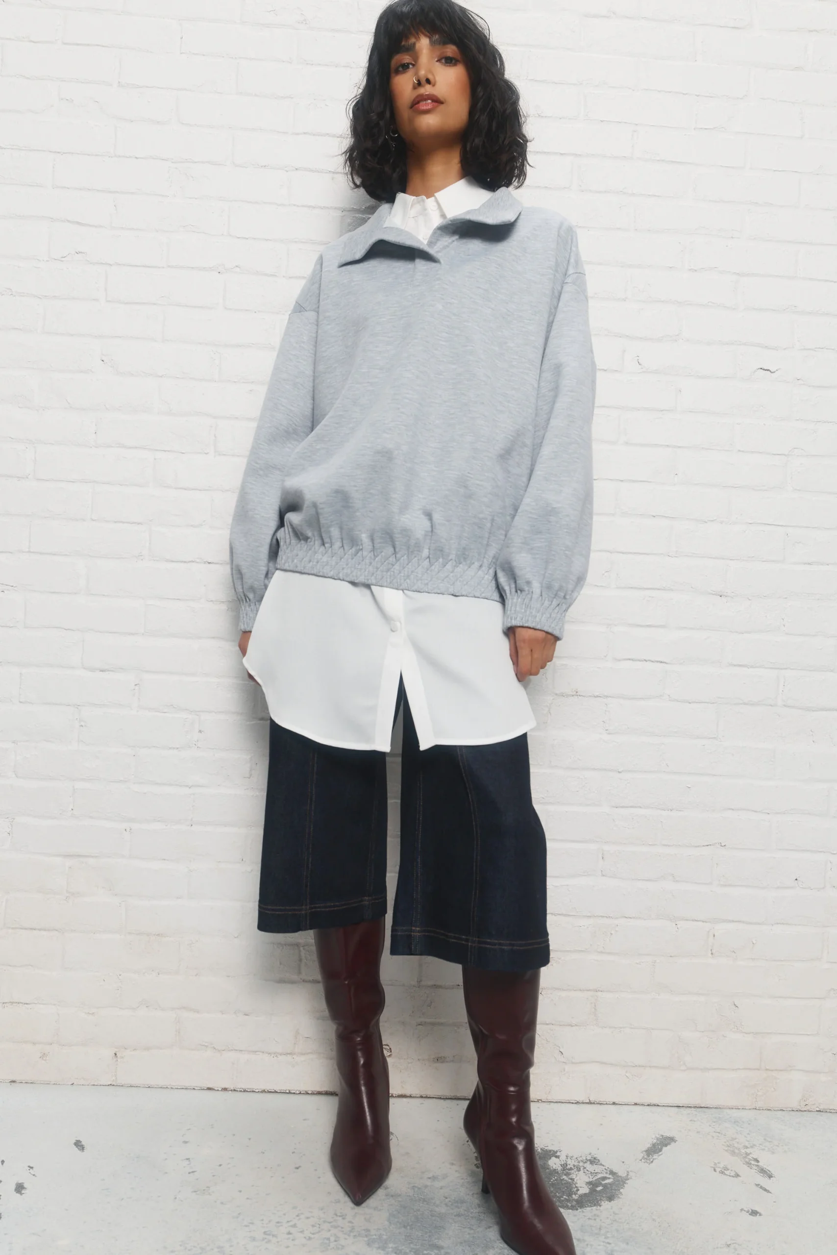 Vous pouvez prendre votre grandeur habituelle (coupe ample). Si vous avez tendance à varier entre deux tailles, vous pouvez opter pour la plus petite taille pour une coupe semi-ample ou la plus grande taille pour une coupe ample. Si vous êtes moins confortable avec les coupes amples, vous pouvez opter pour une taille plus petite afin d’obtenir un effet légèrement plus près du corps.