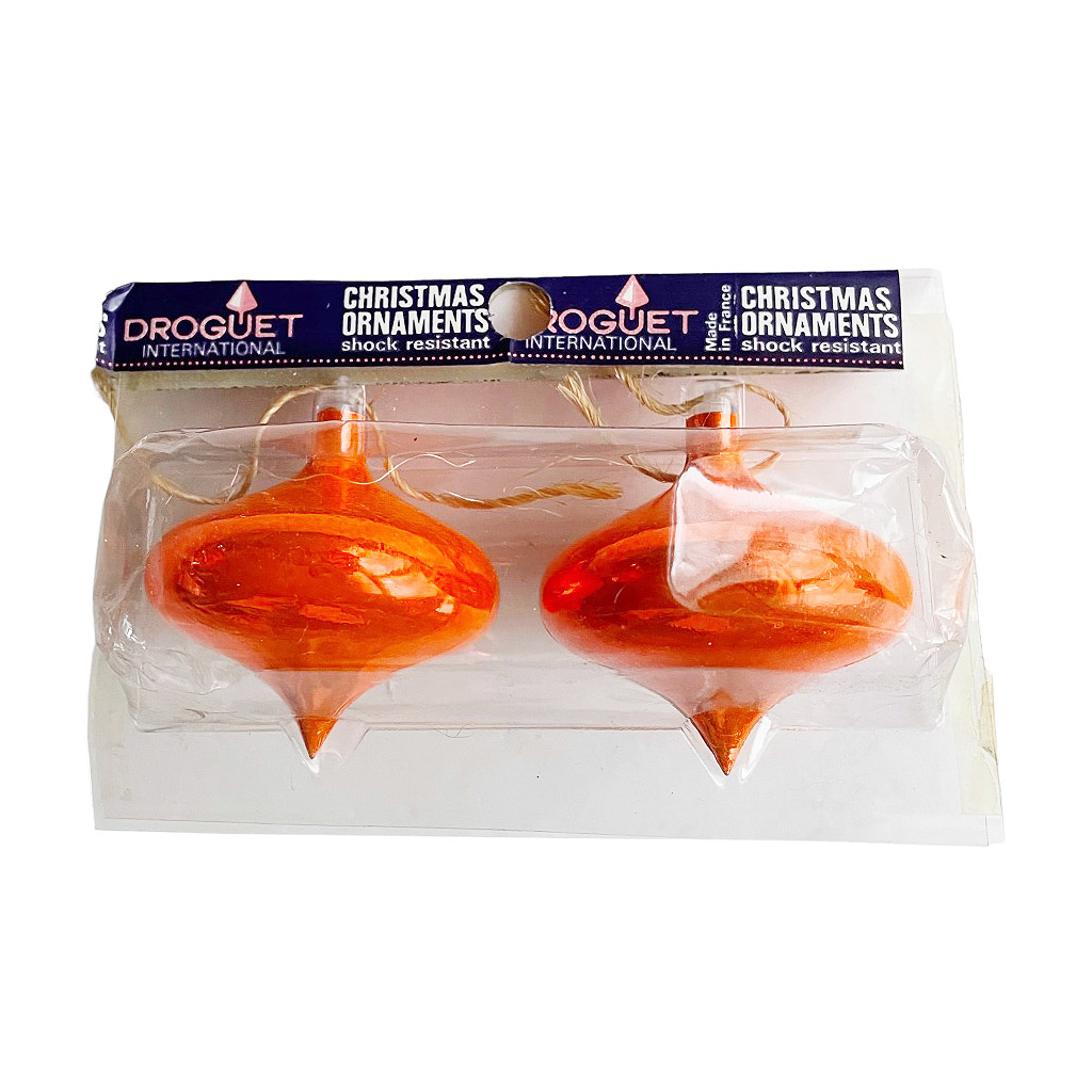 Droguet boules de Noël en plastic rigide vintage années 70, neuves d’époque dans leur boite d’origine, Hauteur boule 7cm, 14,5X9,5cm