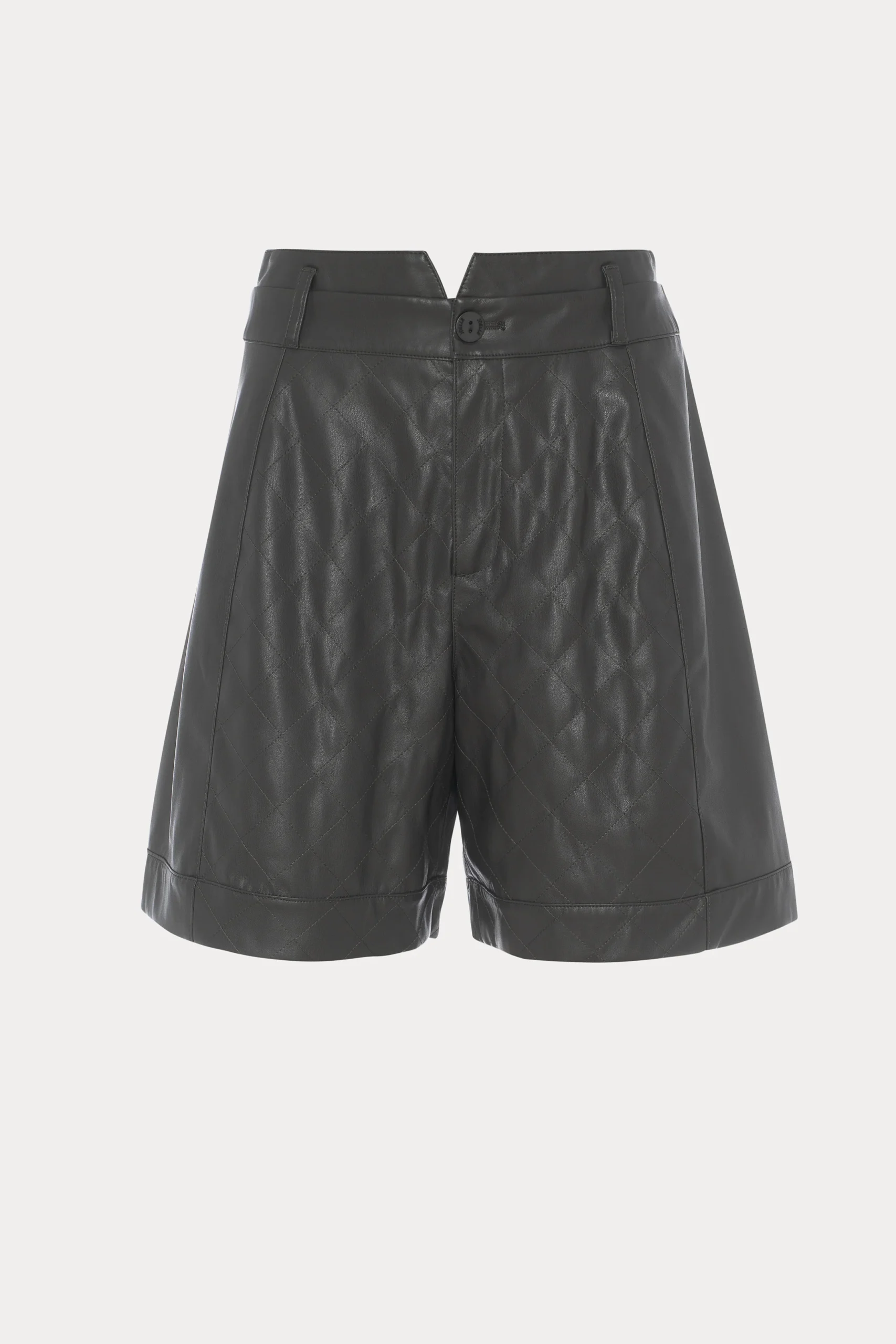 Le short en similicuir vert Elan se démarque par ses détails et son confort absolu. Du jeu de matelassé à son ouverture en V à la taille, il se démarque par son caractère unique.