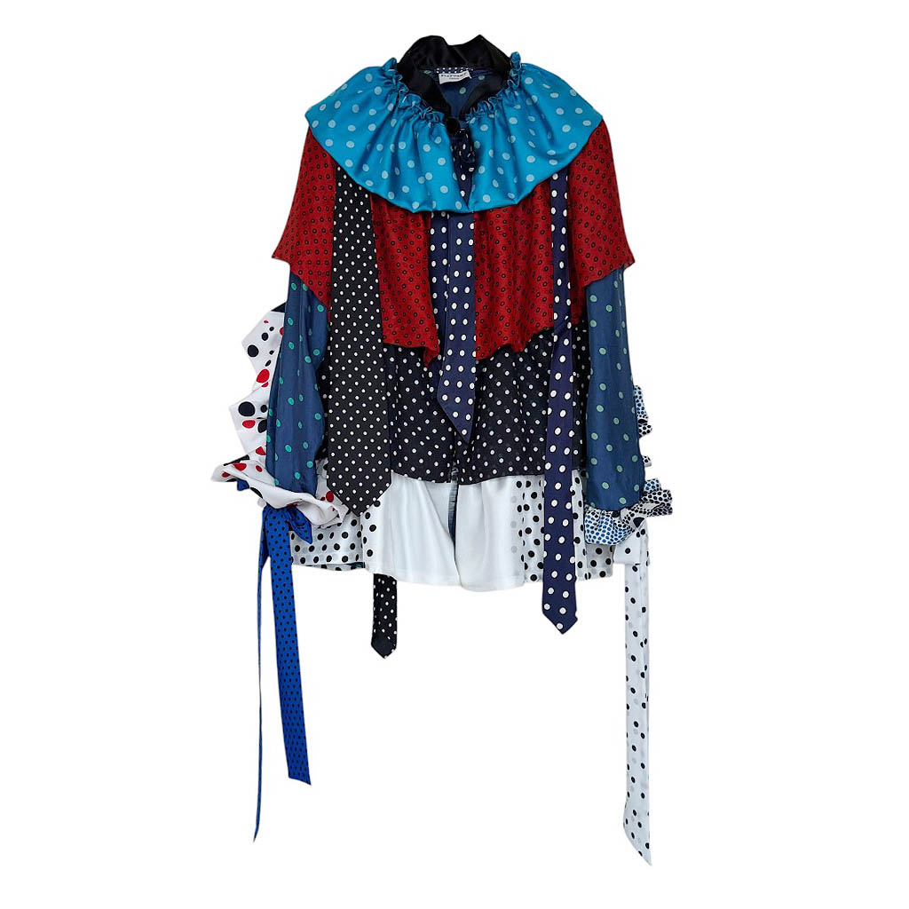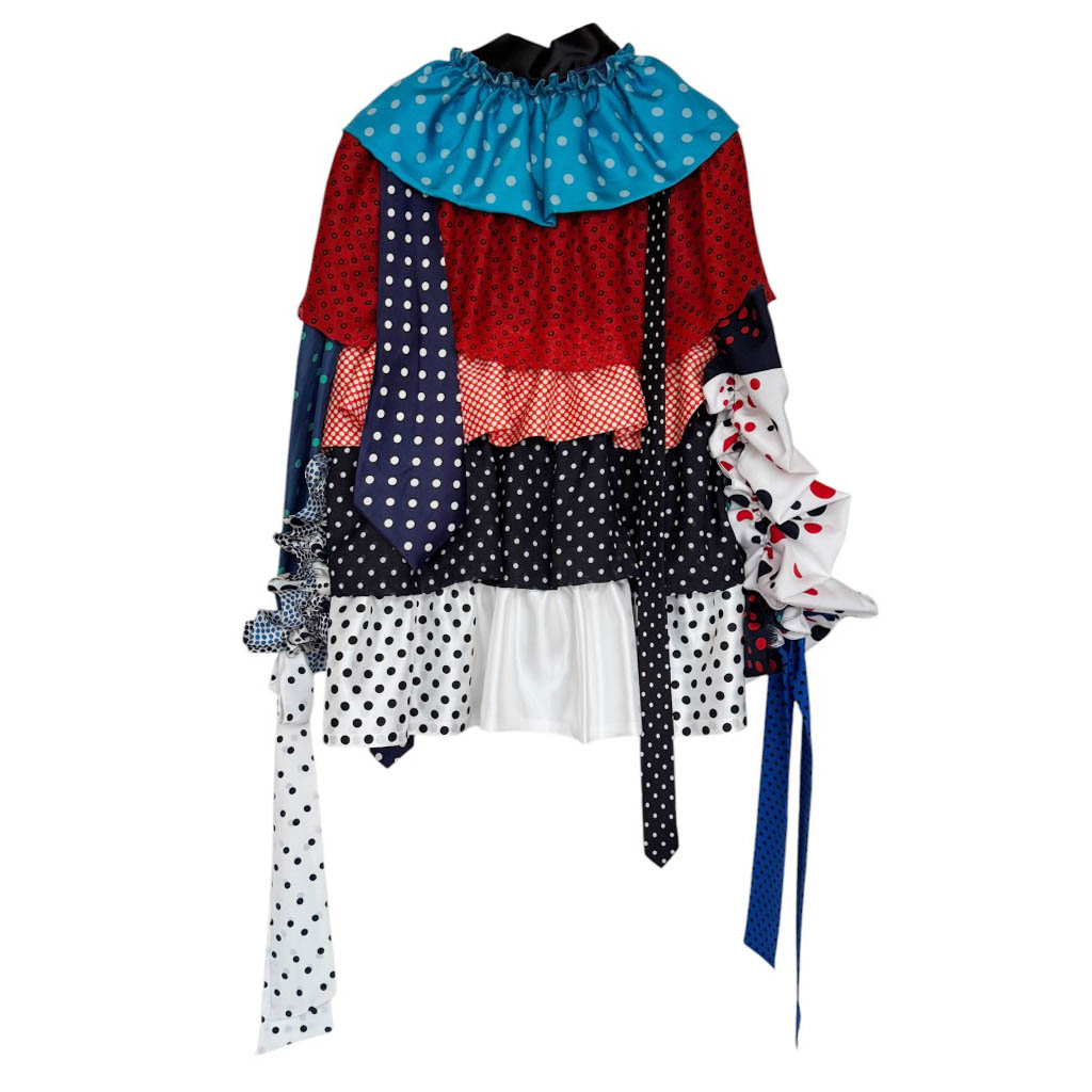 Mini robe-blouse soie volants et pois Elephant Paris Design Blouse en soie mi-longue, coupe trapèze, peut se porter aussi en mini-robe sur un short ou un body Collection QualityStreet, travail d’upcycling en soie et acétate made in France, Taille S/M