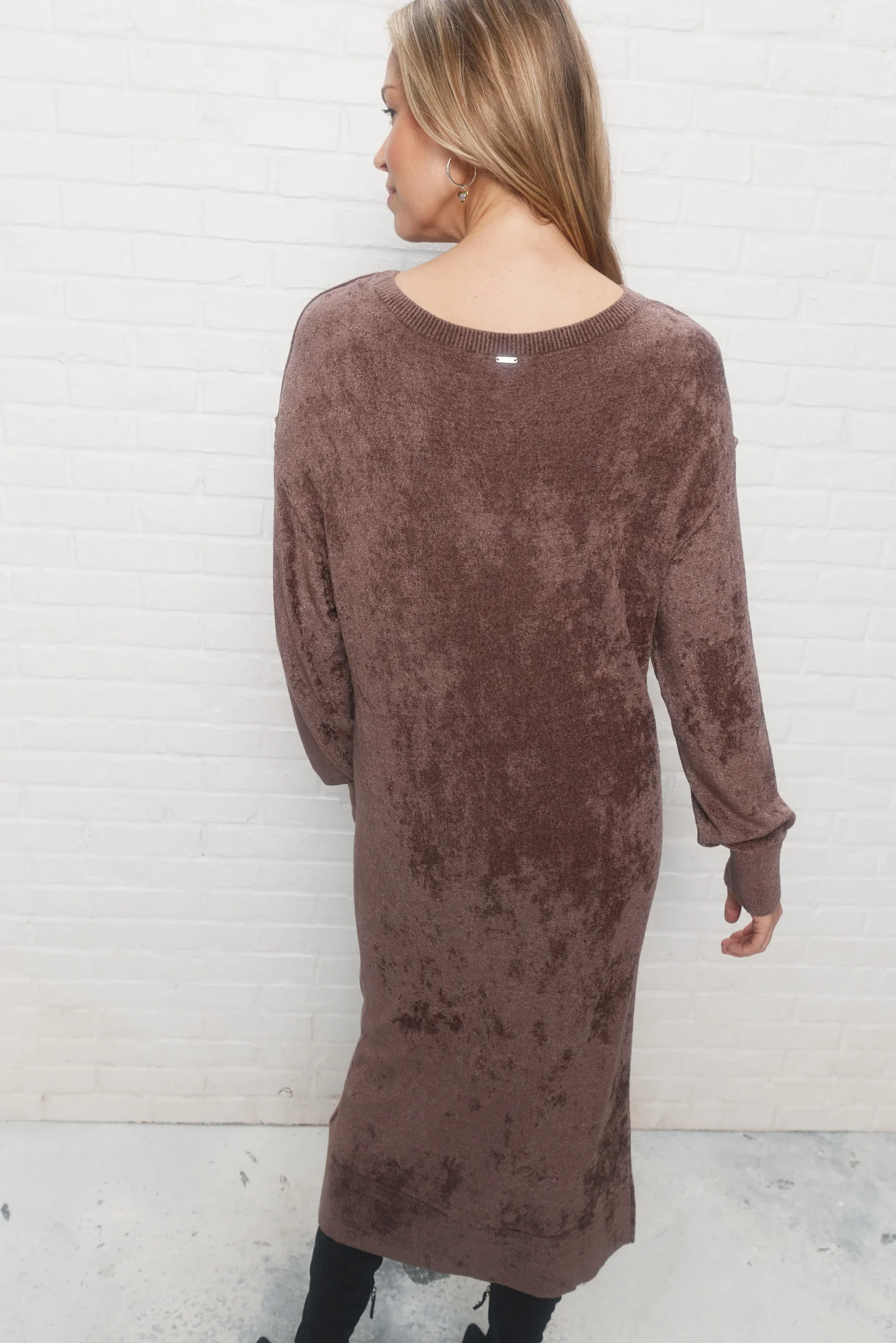 Le modèle mesure 5’9 1/2 (buste 34, taille 26, hanches 36) et porte la taille S