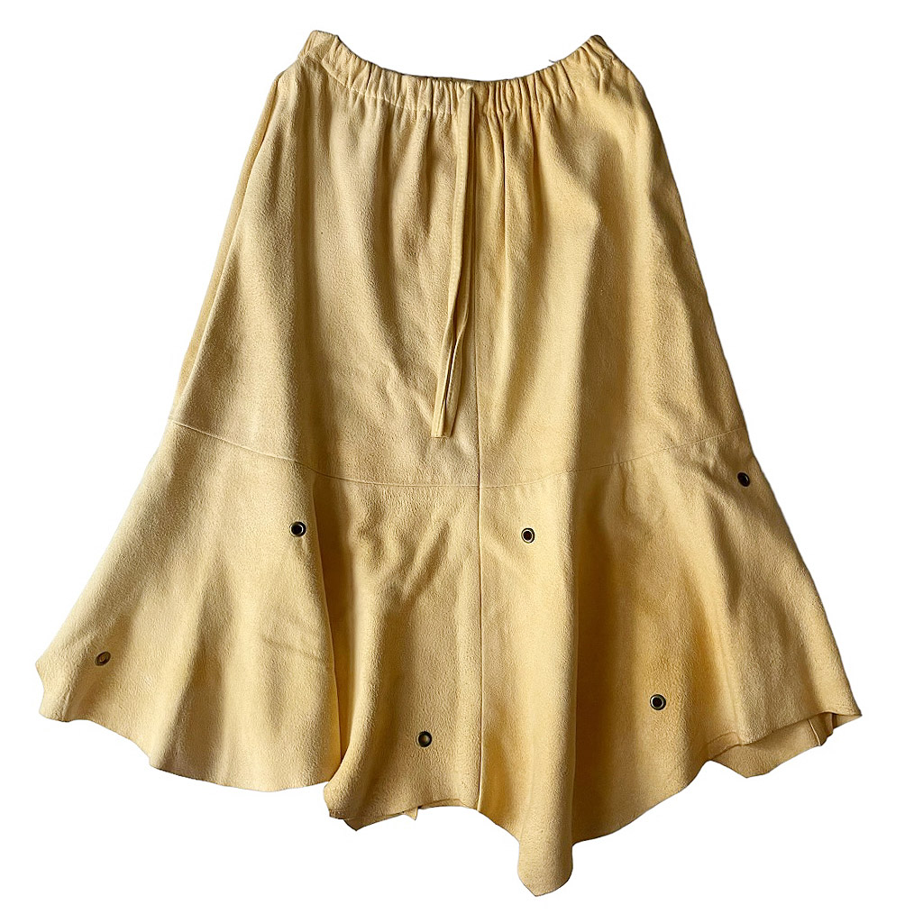 Ensemble daim Colette Nivelle Elephant Paris vVintage années 80 Top : Epaules 22cm, Poitrine 39cm, Taille 31cm, Longueur dos 28cm, Longueur dos avec bretelles 46cm, Jupe Taille élastique 29/40cm, hanches 45cm, Longueur 59cm, Taille 34/36