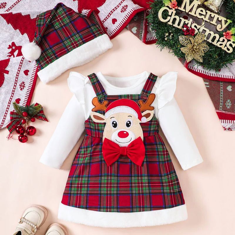 Ensemble De Noël À Carreaux Pour Bébé Fille (3 Pièces)