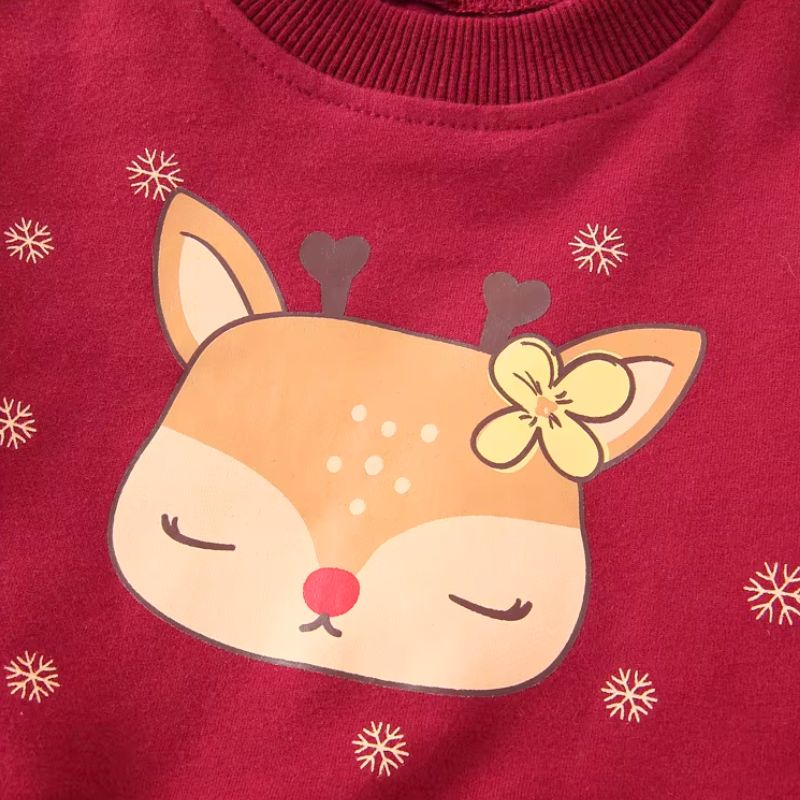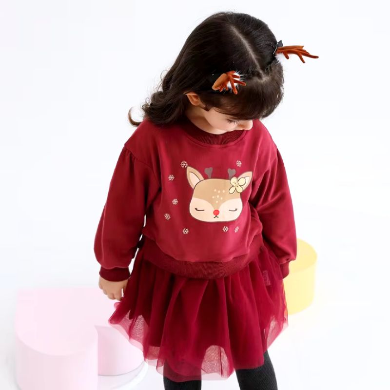 Cet ensemble de fêtes couleur bordeaux est conçu pour sublimer votre petite princesse pendant les célébrations de Noël et les occasions spéciales. Il se compose d’une adorable robe en tulle fluide associée à un sweat doux orné d’un motif de faon endormi et de flocons de neige, parfait pour capturer l’esprit festif et enchanteur des fêtes de fin d’année.