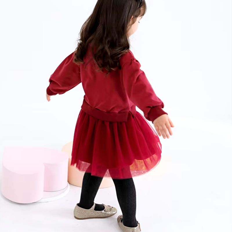 La robe en tulle apporte une touche de légèreté et d’élégance, tandis que le pull en molleton doux garde votre enfant bien au chaud, idéal pour les périodes fraîches de l’automne et du printemps. Cet ensemble allie confort et style, permettant à votre enfant de bouger librement tout en étant élégamment vêtue.