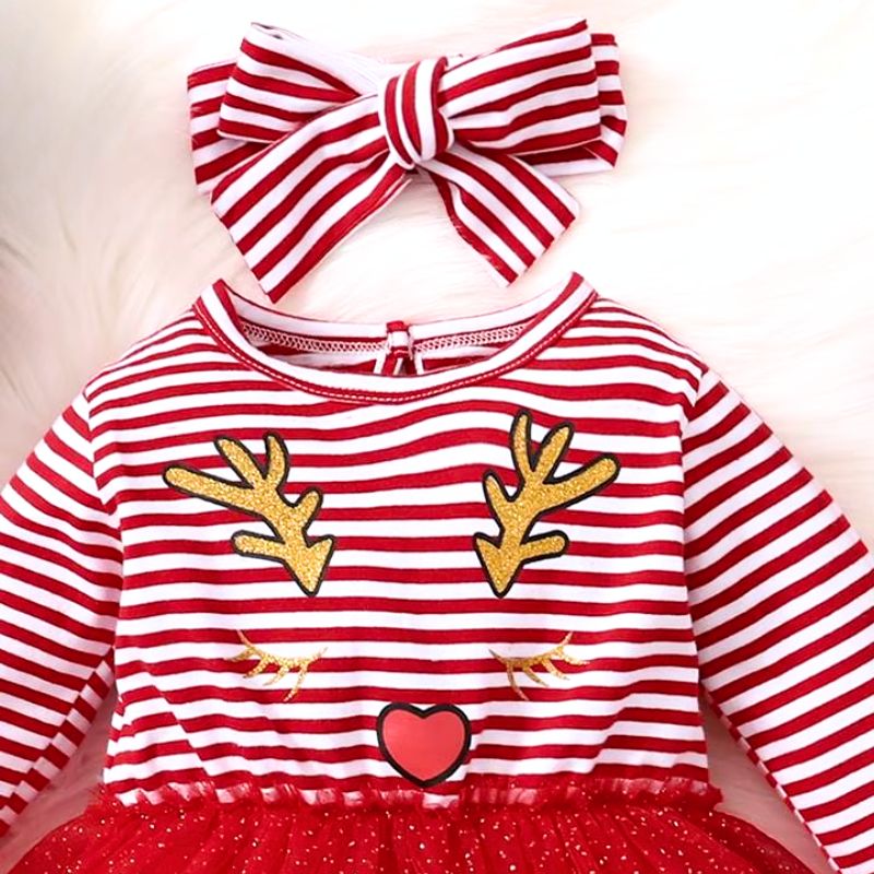 Accompagnée d’un bandeau assorti à rayures, cette tenue est idéale pour les photos de famille et les repas de Noël. Confortable et conçue dans un tissu doux et extensible, elle garantit à votre enfant une liberté de mouvement pour profiter pleinement des festivités.