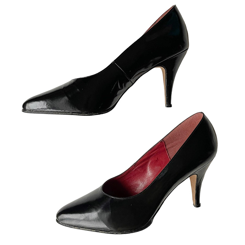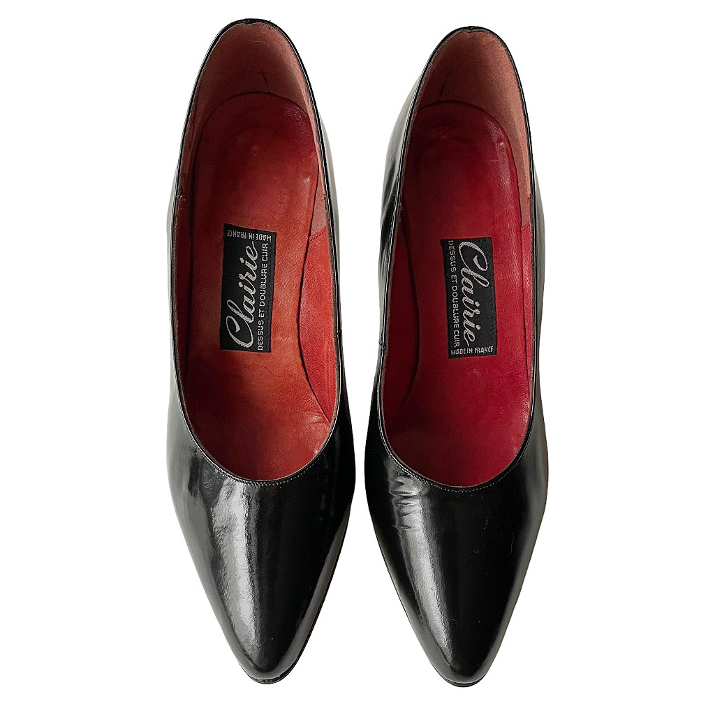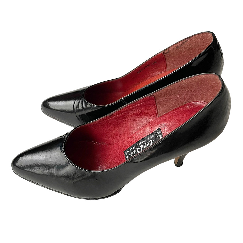 Escarpins Clairie en cuir noir vernis vintage années 50, doublés cuir, talons en fer Hauteur talon 8cm, Pointure 36, 3/5