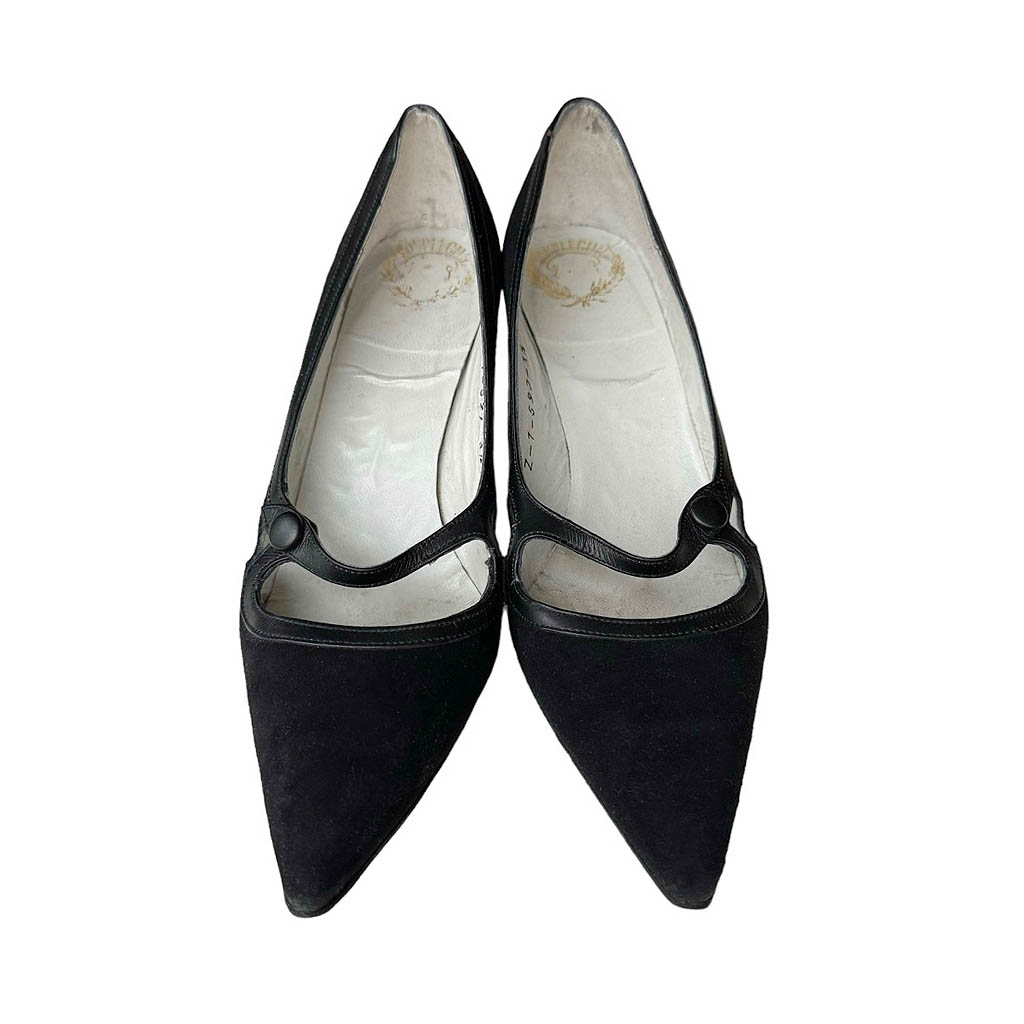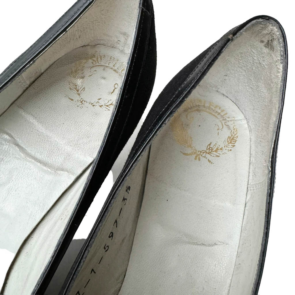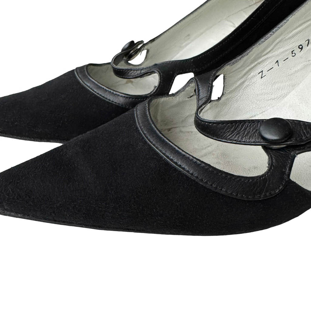 Escarpins Souple Chic 50s en daim et cuir Elephant Paris vintage Pointure 3/5, 35/36, Longueur semelle 21cm, Hauteur talon ferré 7cm