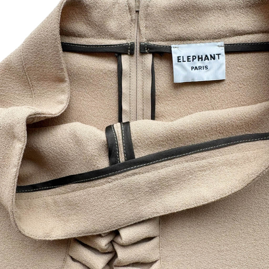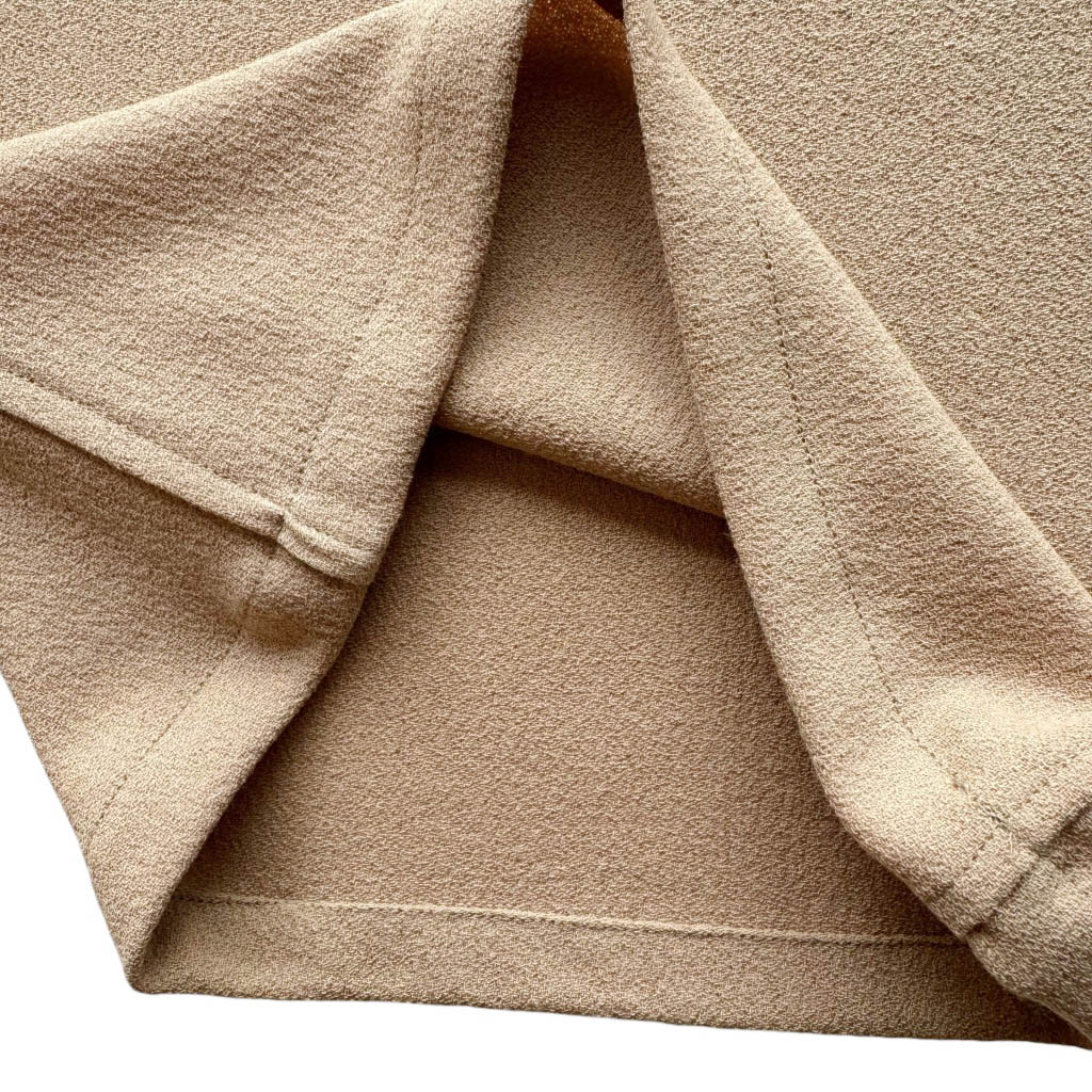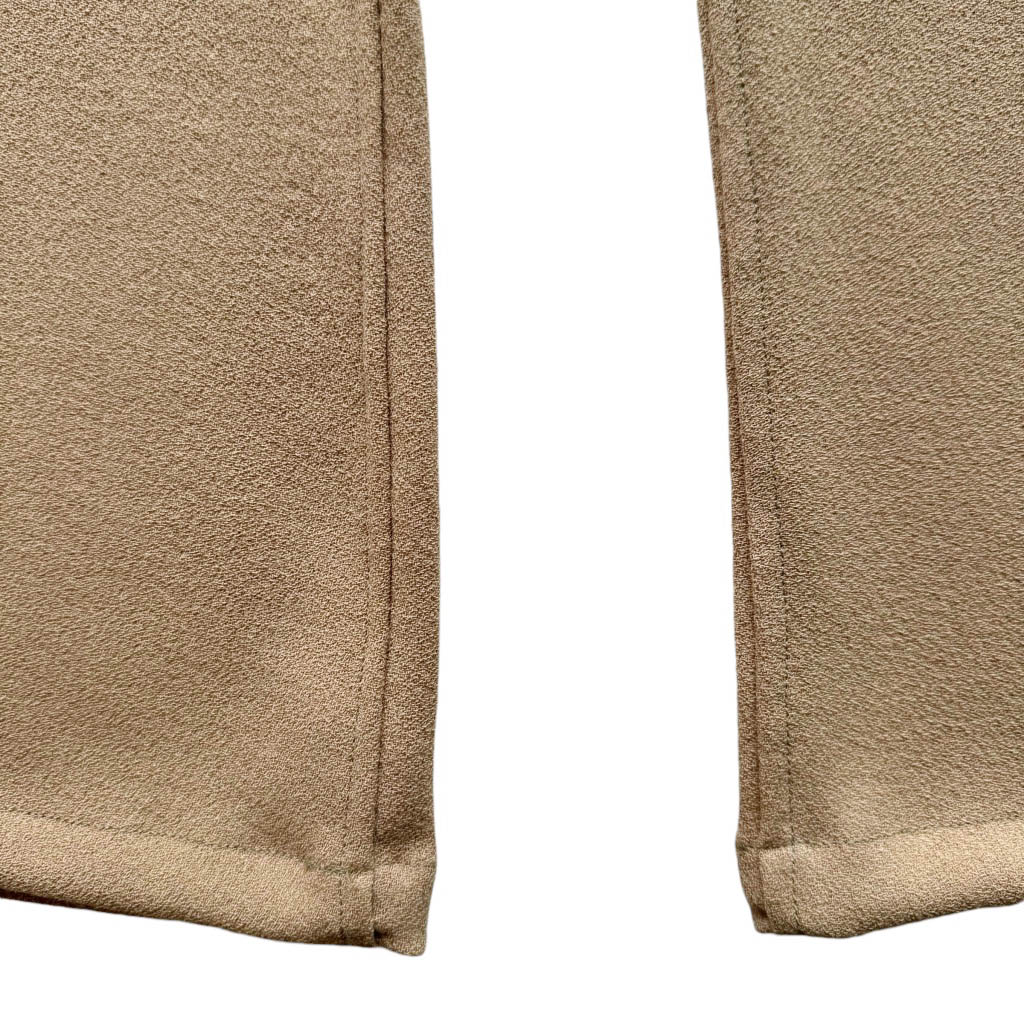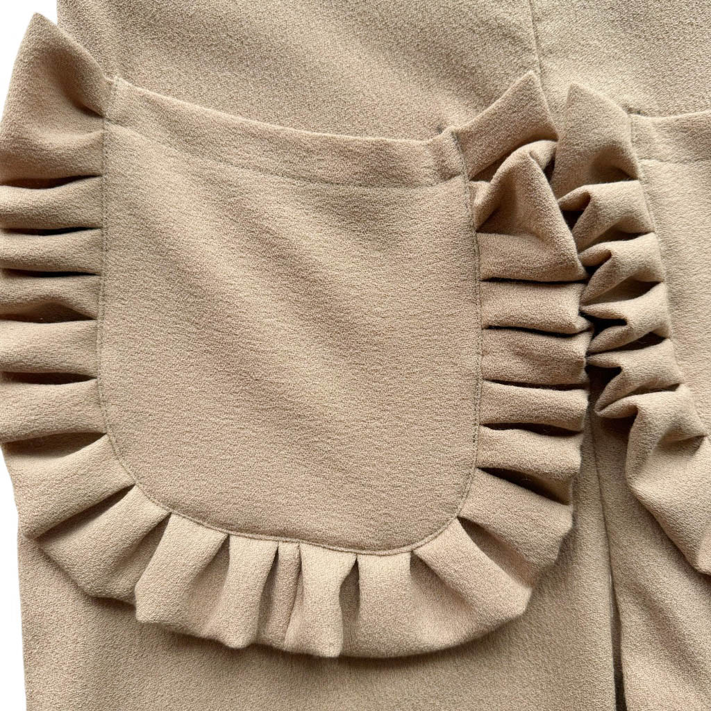 Flare Butterfly crêpe de chine camel Elephant Paris Design Pantalon pattes d’éléphant poches plaquées à volants, réalisé en crêpe de chine, poches plaquées, fermeture dos, coutures anglaises et finitions biais Réalisé avec des matériaux anciens, Pièce unique Made in France, Taille haute 35cm, Hanches 44cm, Longueur entrejambes depuis la taille 31cm, Longueur depuis la taille avec la ceinture 108cm, Longueur jambe depuis la fourche 78cm, Taille 36, S
