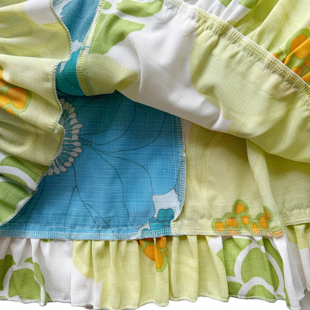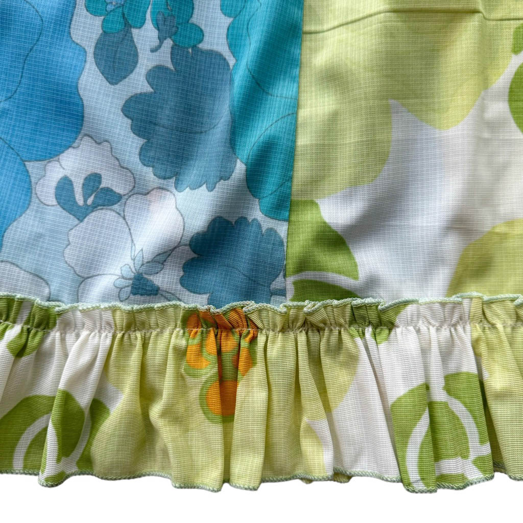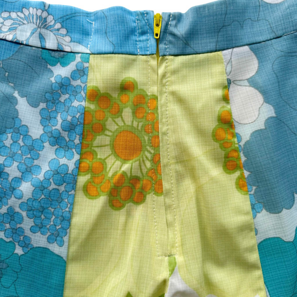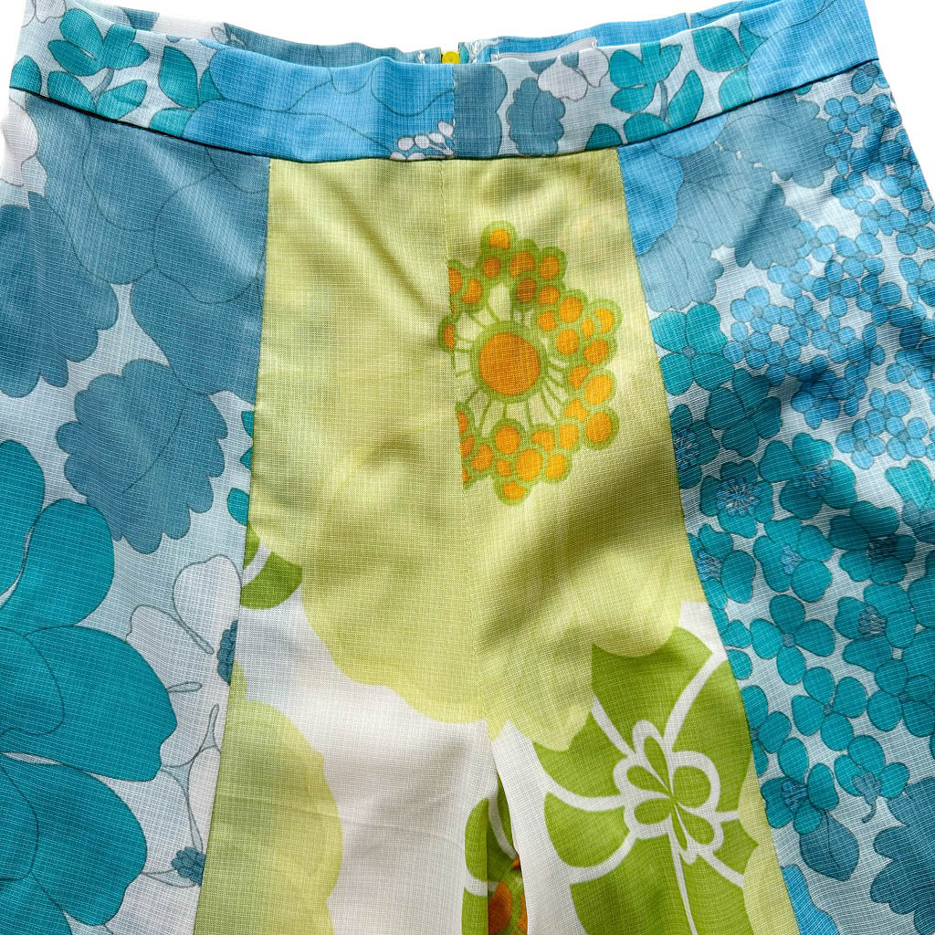 Flare Chantilly vert bleu Elephant Paris Design Réalisé avec des matériaux anciens, nylons fluides et légèrement transparents des années 70, Pièce unique Made in France, Taille haute 35cm, Hanches 45cm, Longueur entrejambes depuis la taille 30cm, Longueur 111cm, Taille 34/36, S
