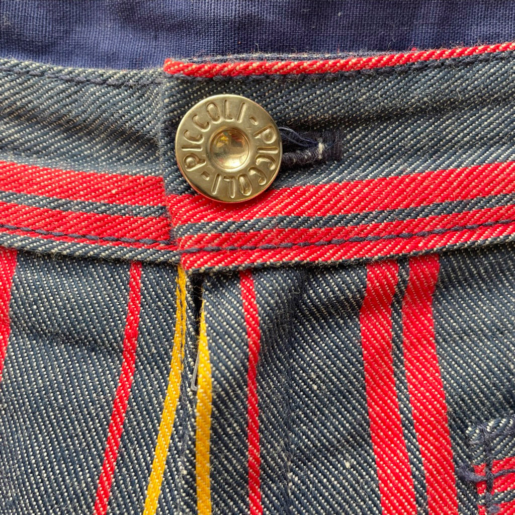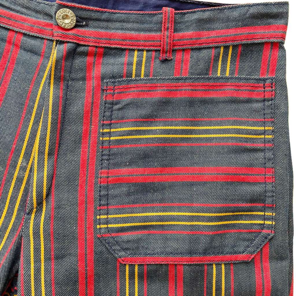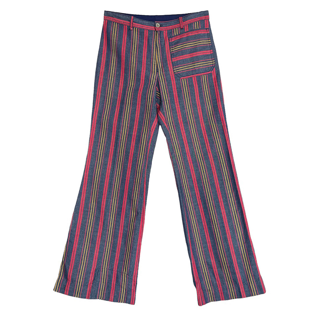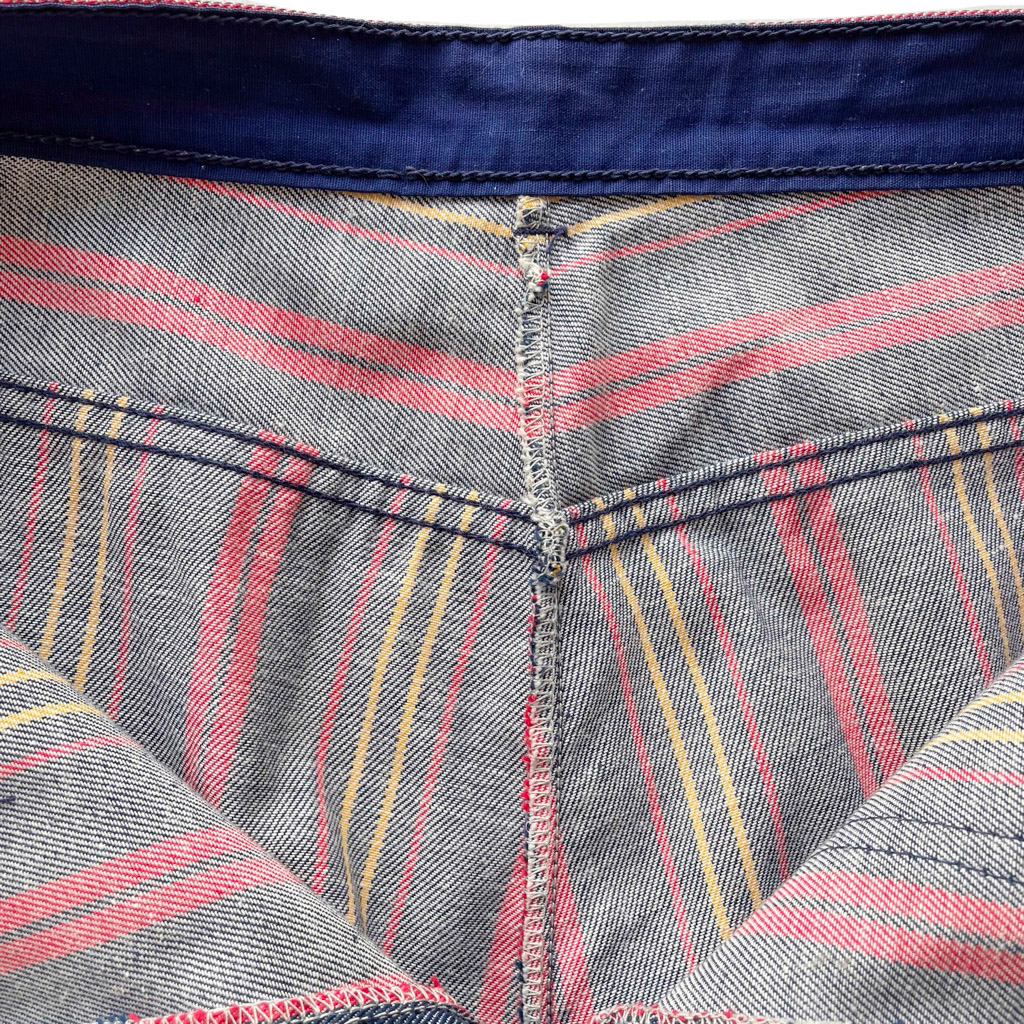 Flare en jean fin à rayures, années 70 Elephant Paris Vintage Taille 38cm, Hanches 44cm, Longueur entrejambes 23cm, Longueur 100cm, Taille globale 38