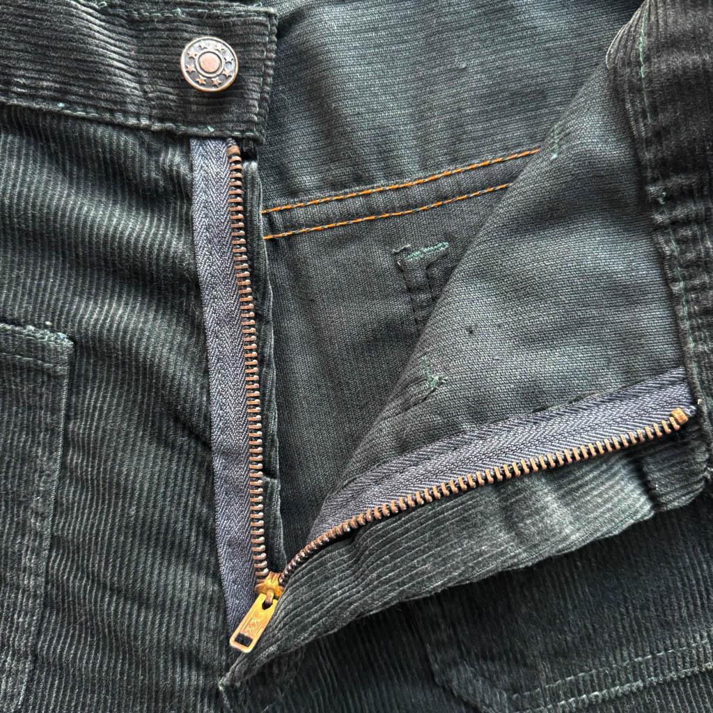 Flare velours cotele Brummell Elephant Paris Vintage Années 70, pattes d’éléphant coton en velours côtelé fin vert bouteille foncé, quatre poches plaquées et surpiquées, finitions plat sur plat, bouton pression à étoiles, passants pour ceinture, se porte taille haute ou basse Mesures à plat : Taille 38cm, Hanches 43cm, Longueur entrejambe depuis la taille 27cm, Longueur depuis la taille avec la ceinture 112cm, Longueur jambe depuis la fourche 82cm, Taille 38, Neuf d’époque