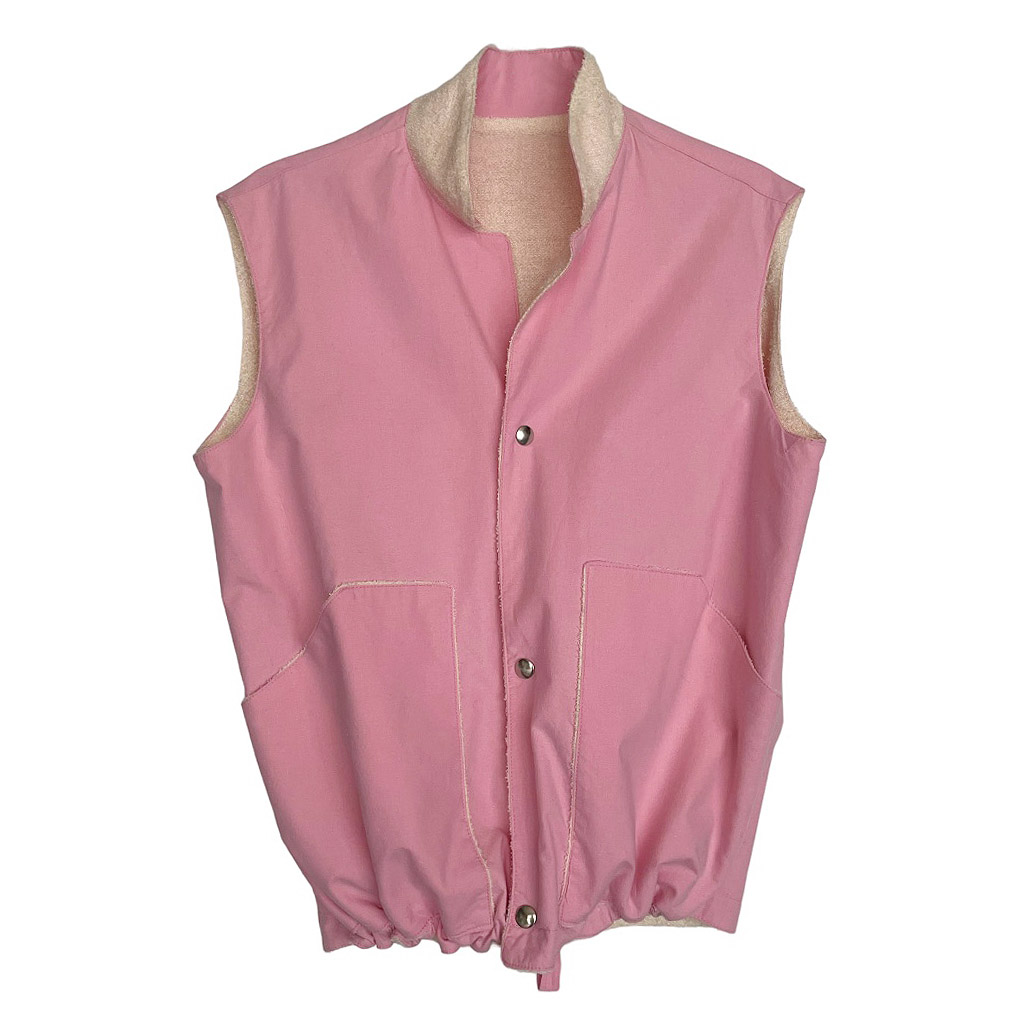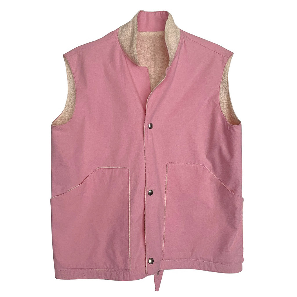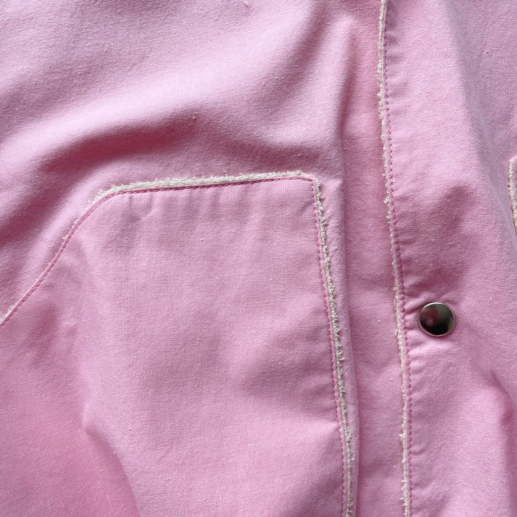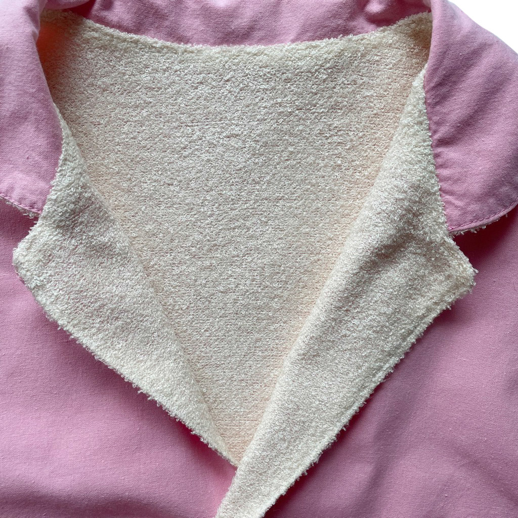 Gilet éponge et coton rose pastel Gilet en éponge fine et coton épais rose pastel Elephant Paris Vintage années 80, grandes poches, boutons pressions, col officier, Taille M/L