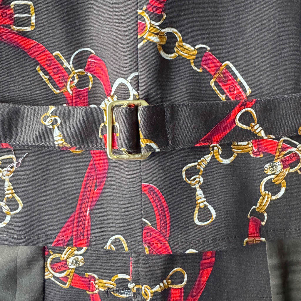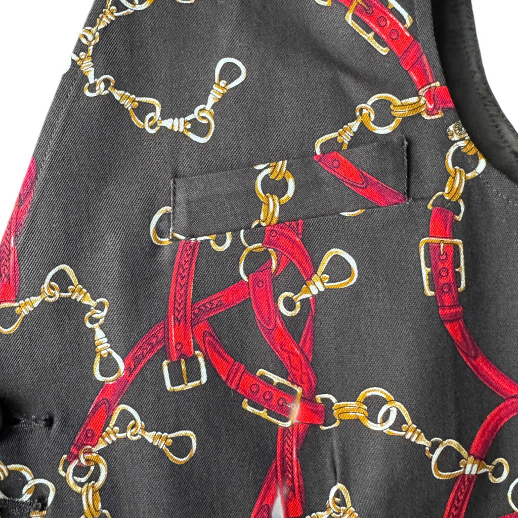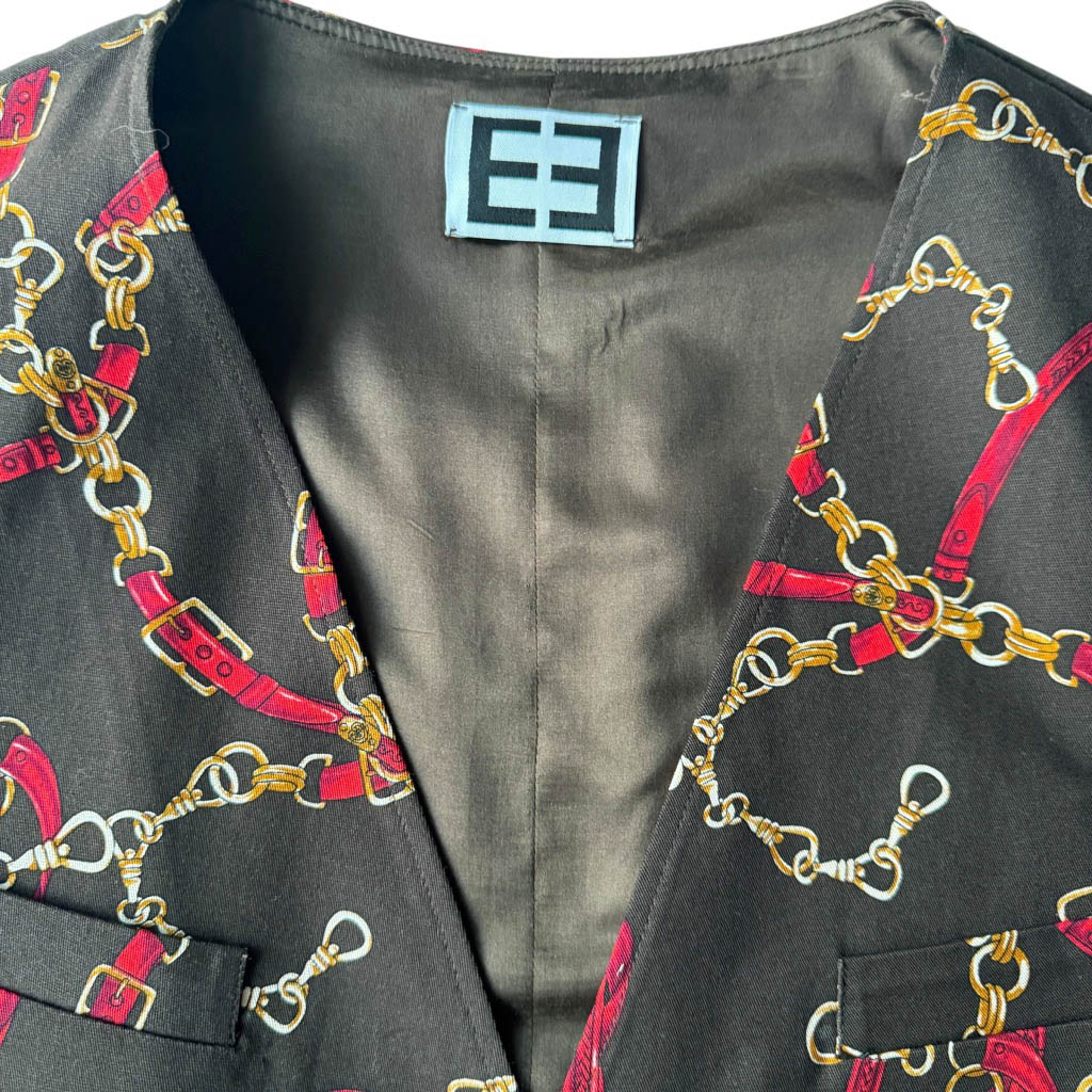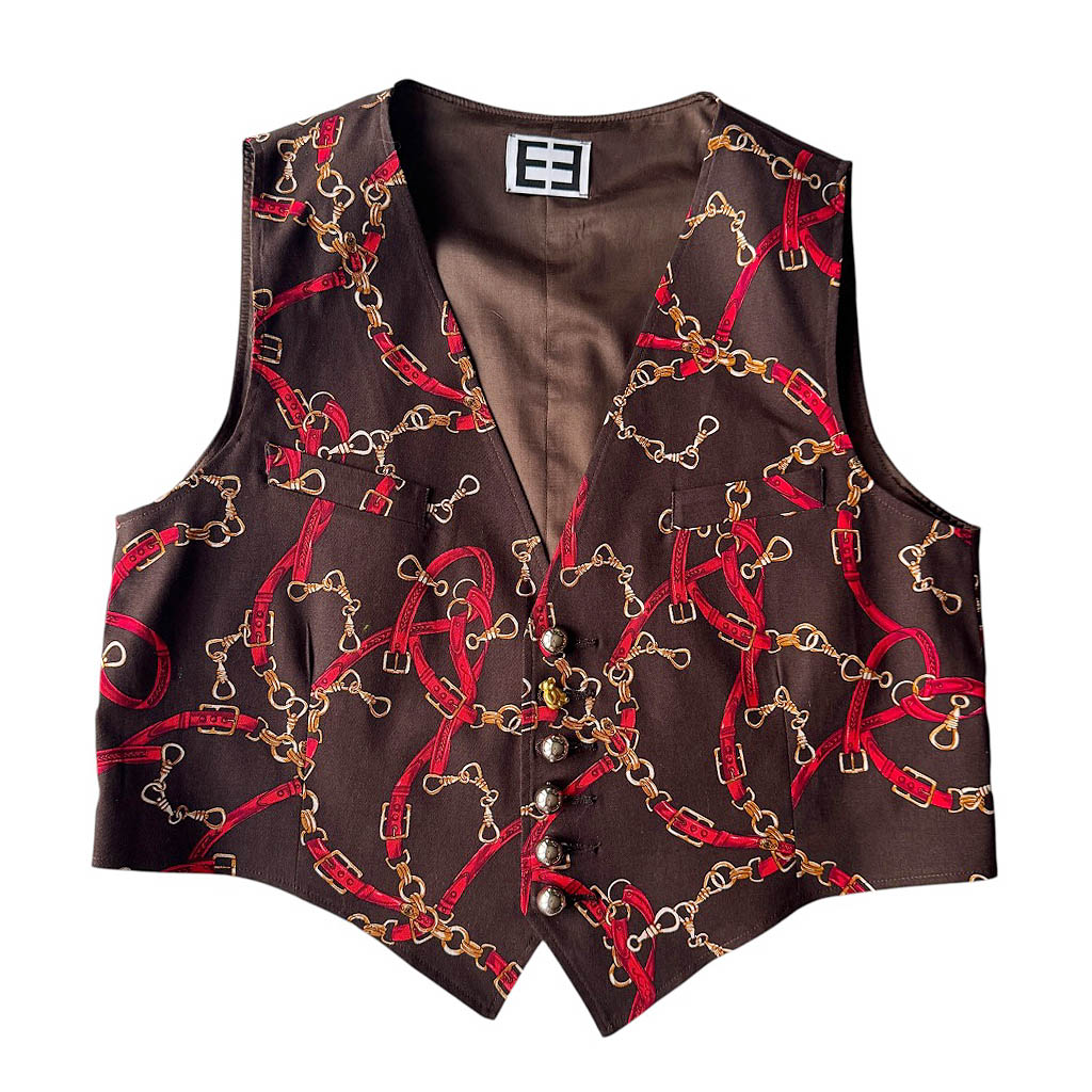 Gilet Heritages Elephant Paris Design Ce petit gilet de costume est réalisé en coton et élasthanne au motif Saint-Honoré, doublé d’un satin soie pour un tombé souple et raffiné.Son allure évoque le tailoring parisien revisité par Elephant Paris, entre élégance classique et singularité artisanale. Le gilet présente deux poches passepoilées à l’avant, une bride réglables dans le dos, et six boutonnières brodées avec du fil coordonné de soie.Les boutons et la boucle, sont neufs d’époque, proviennent des années 1 9 7 0 et 1 9 8 0, ils sont en métal argenté et doré, ils ajoutent un éclat subtil et…