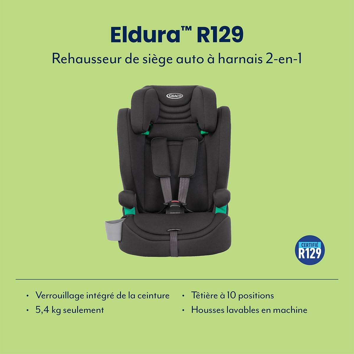 Graco Eldura R129, Siège Auto 2-en-1 Groupe 1/2 (76 à 145 cm)