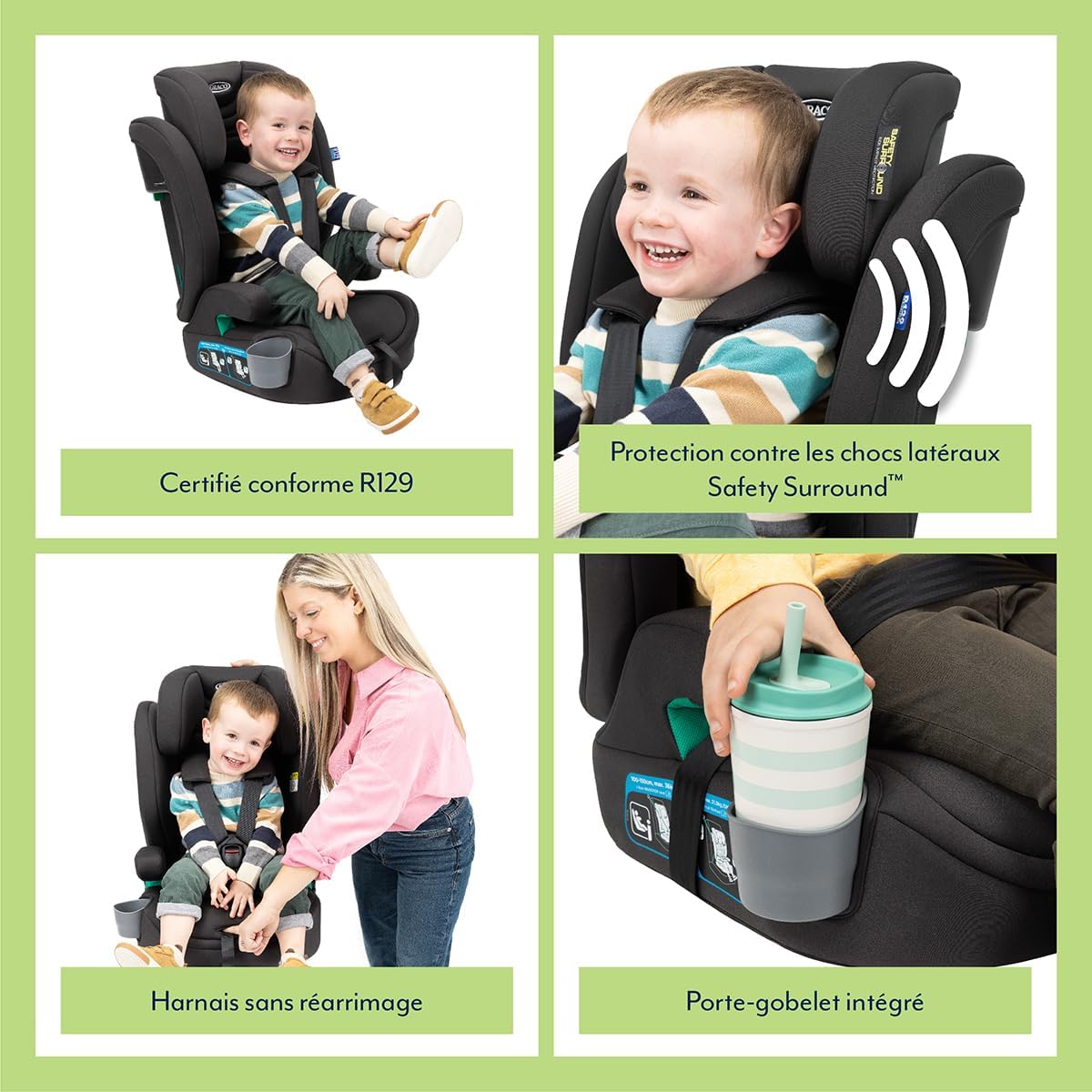 Le Graco Eldura R129 est bien plus qu’un simple siège auto; c’est une promesse de sécurité et de confort pour votre enfant. Conçu selon les normes les plus strictes de l’i-Size/ECE, ce siège a subi des tests rigoureux pour garantir une protection optimale en cas de choc latéral. Son système d’installation polyvalent, que ce soit par Isofix ou ceinture de sécurité, assure une fixation solide et sécurisée. La protection latérale Safety Surround enveloppe votre enfant pour une sécurité accrue, vous offrant ainsi une tranquillité d’esprit inestimable.