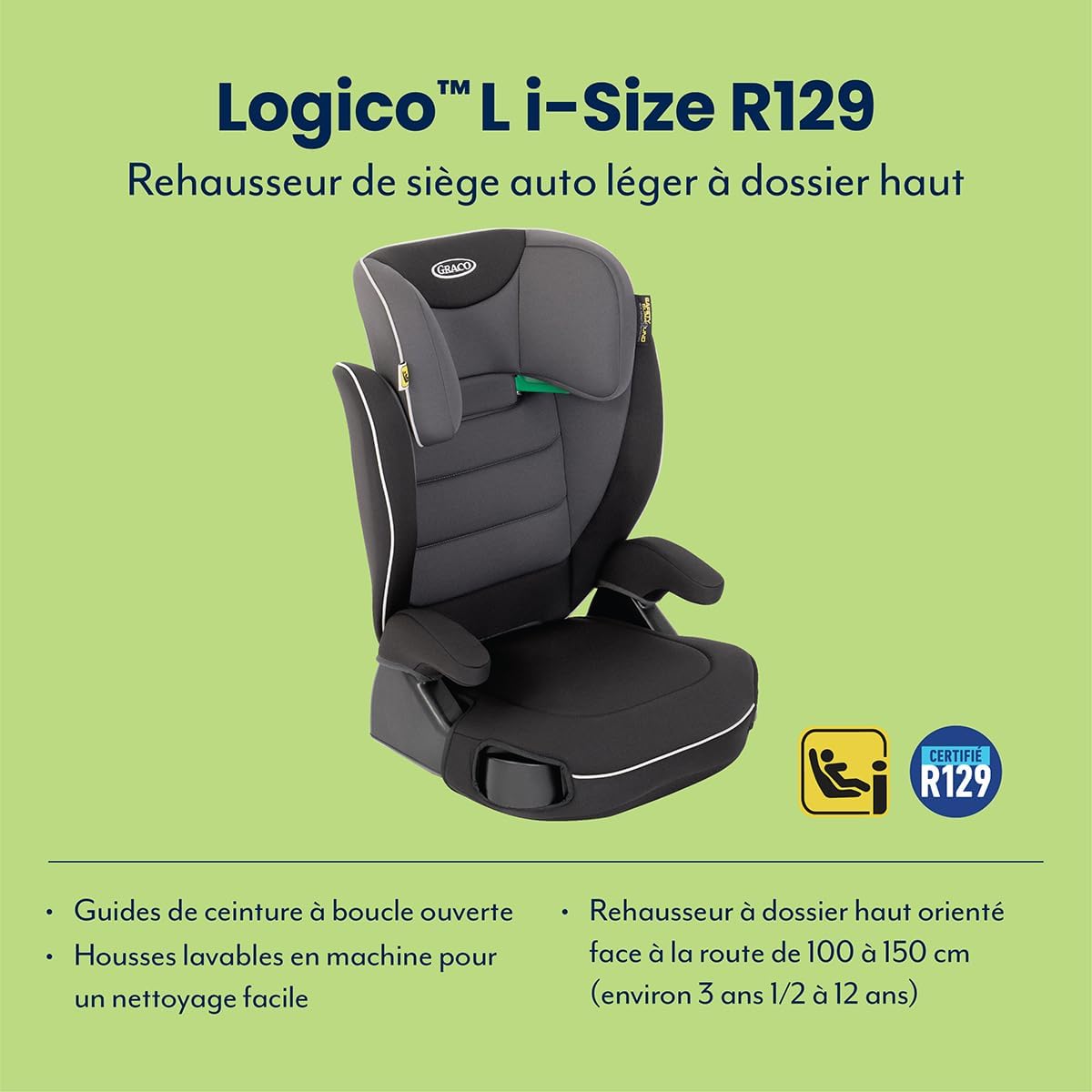 Graco Logico L i-Size R129 – Rehausseur de siège auto 100-150 cm – Noir Midnight