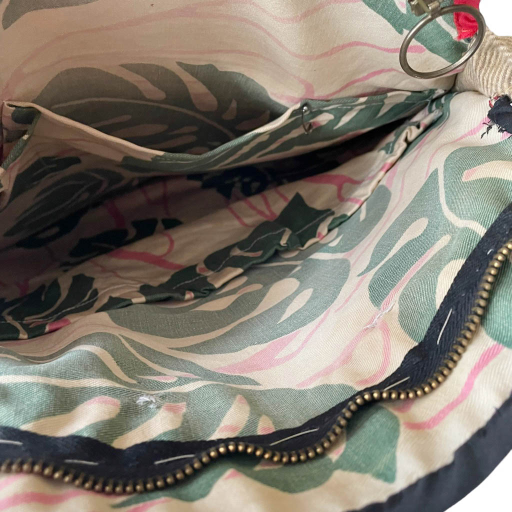 Grand sac coccinelle 70s Elephant Paris Vintage Entièrement réalisé à la main, avec des très beaux matériaux anciens. Dimensions du sac : hauteur : 1 9 : c m, largeur 2 4 c m, longueur hanse réglable : 7 c m et hauteur 1 4 c m, accessoire de collection, vintage datant des années 1 9 7 0 Bon état général, en coton et toile de jute, doublé avec un coton imprimé datant des années 1 9 5 0