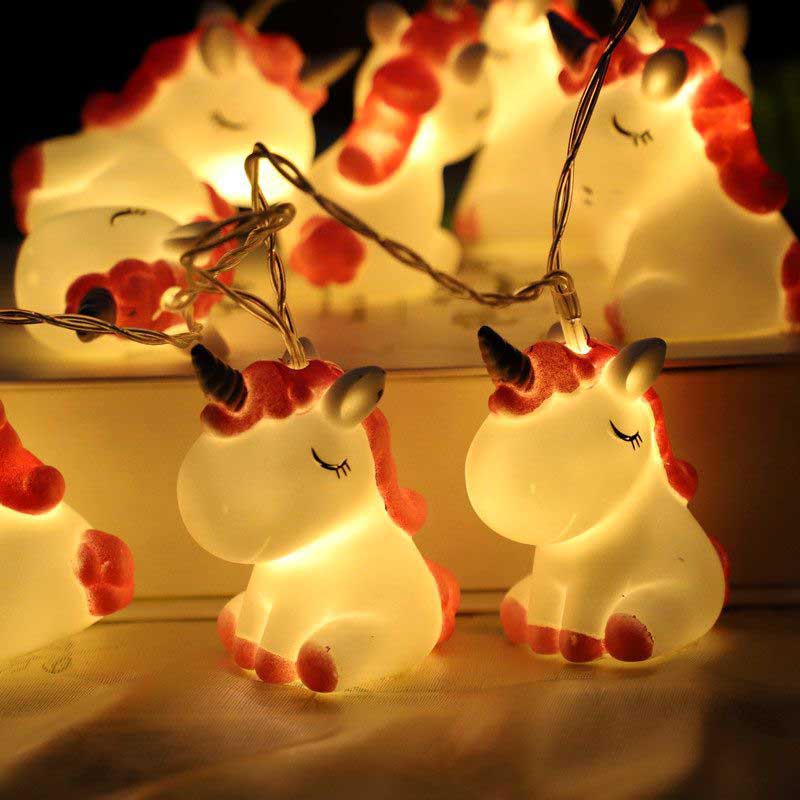 Cette guirlande lumineuse licorne est un objet décoratif qui illuminera la chambre à coucher et y ajoutera une touche féérique et magique ! En effet, elle est composée de petites licornes en vinyle durable et recyclé, qui diffuseront une douce lumière et de faible intensité. Elle est donc parfaite pour apaiser et calmer les petits et les aider à s’endormir. Elle fera également le bonheur des personnes amateurs de licornes. La guirlande mesure 1,8 m et les licornes 7 x 5,5 cm.