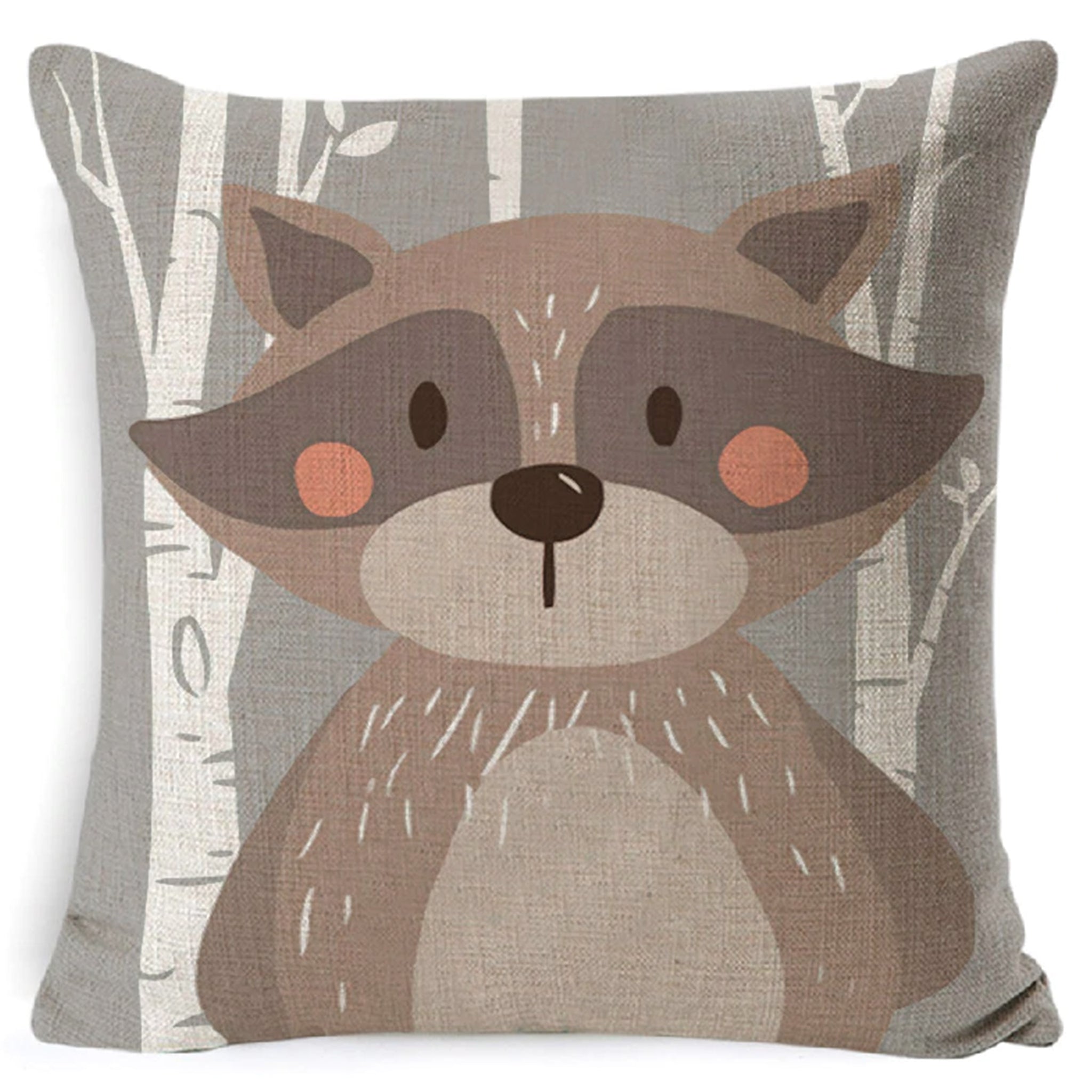 Jolie housse de coussin en lin et coton Son design mignon de raton laveur ravira votre enfant Installation facile et pratique