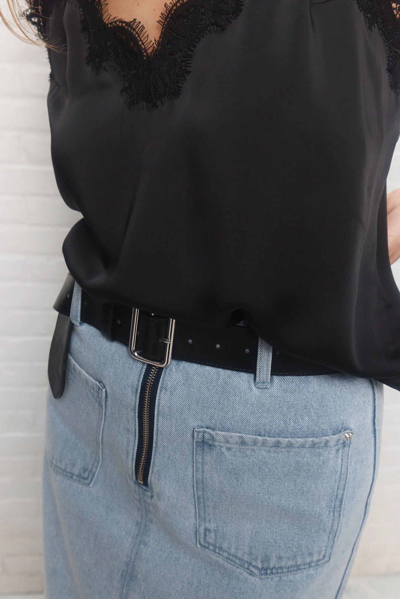 Spécifications Ceinture en cuir synthétique Couleur : noire Boucle carrée argentée Logo JOELLE sur la ganse Longueur XS/S : 122 cm (48 po) Longueur M/L : 132 cm (52 po) Le modèle porte la taille XS/S Cette ceinture est développée au Québec et fabriquée à l’étranger Composition 100 % polyuréthanne Entretien Nettoyer avec un linge […]
