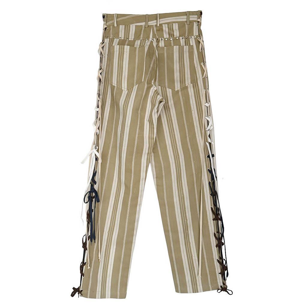 Jean 6 poches Matelas West lace Elephant Paris Design Réalisé avec des matériaux anciens coton matelas années 70, Pièce unique Made in France Taille haute réglable par pressions 42/45cm, Longueur entrejambes depuis la taille 31cm, Longueur depuis la taille avec la ceinture 100cm, Longueur jambe depuis la fourche 80cm, Taille 42 homme