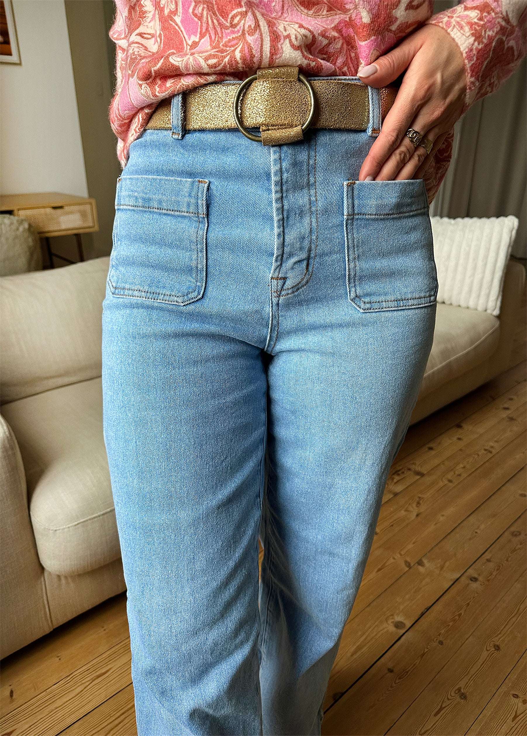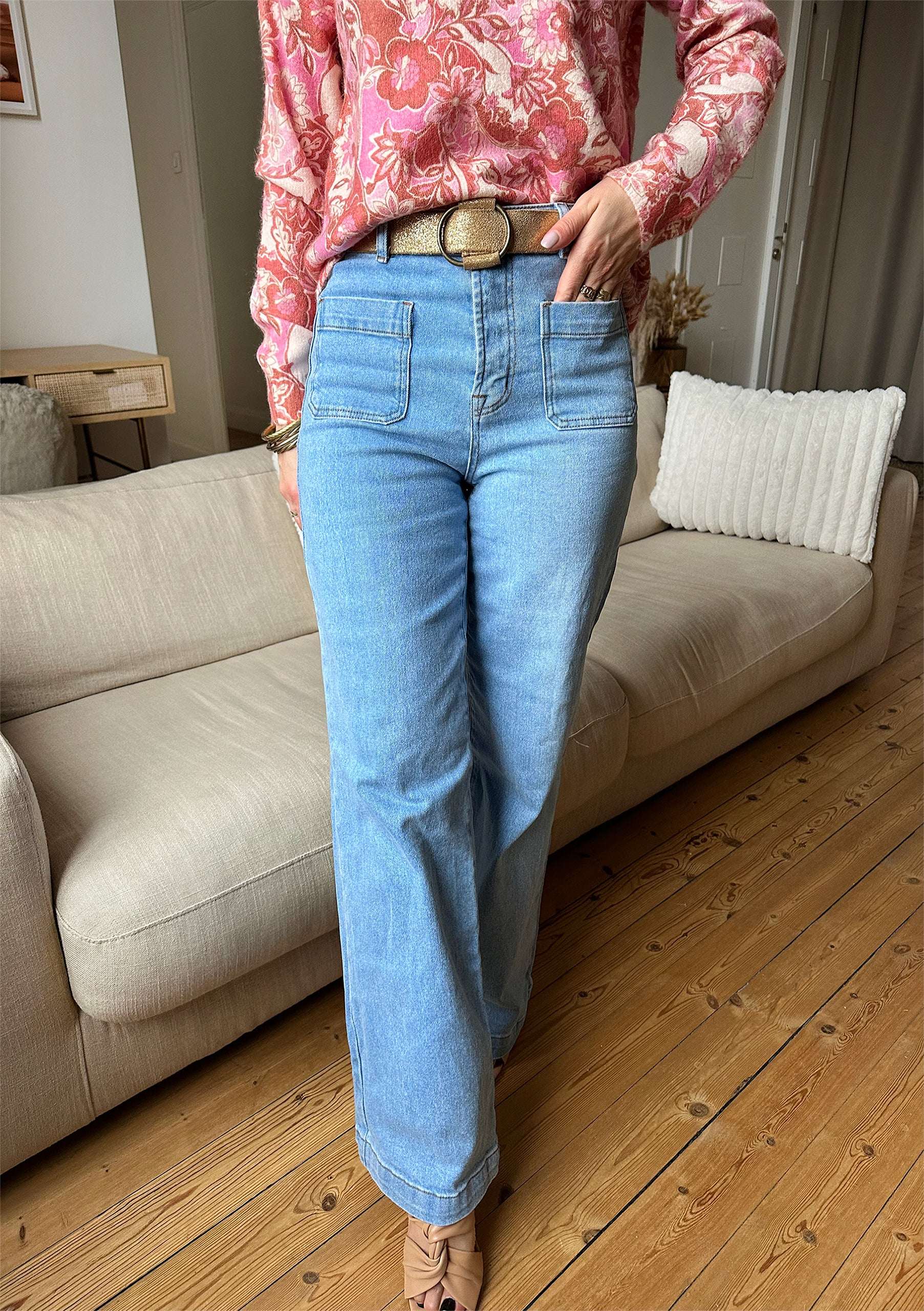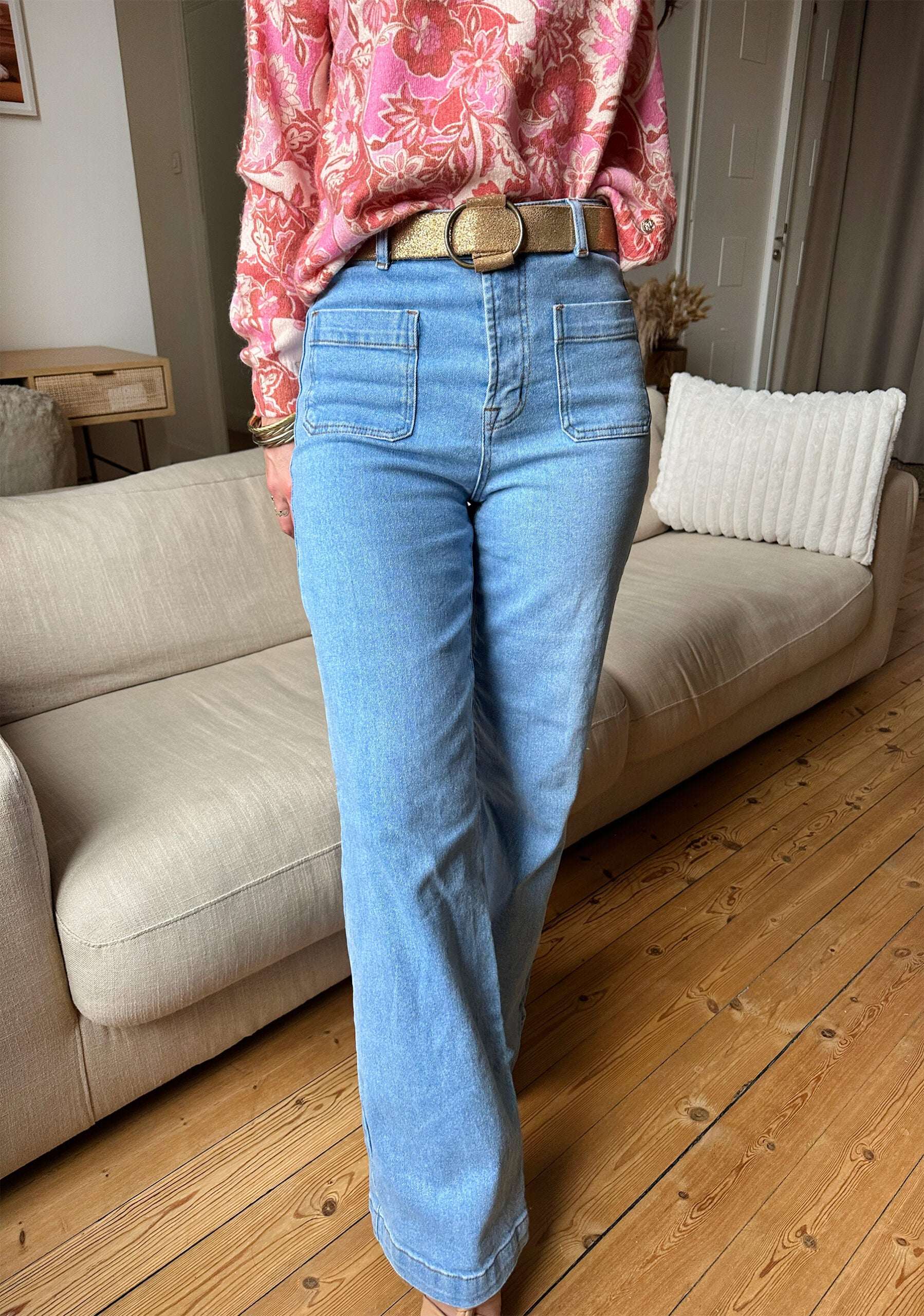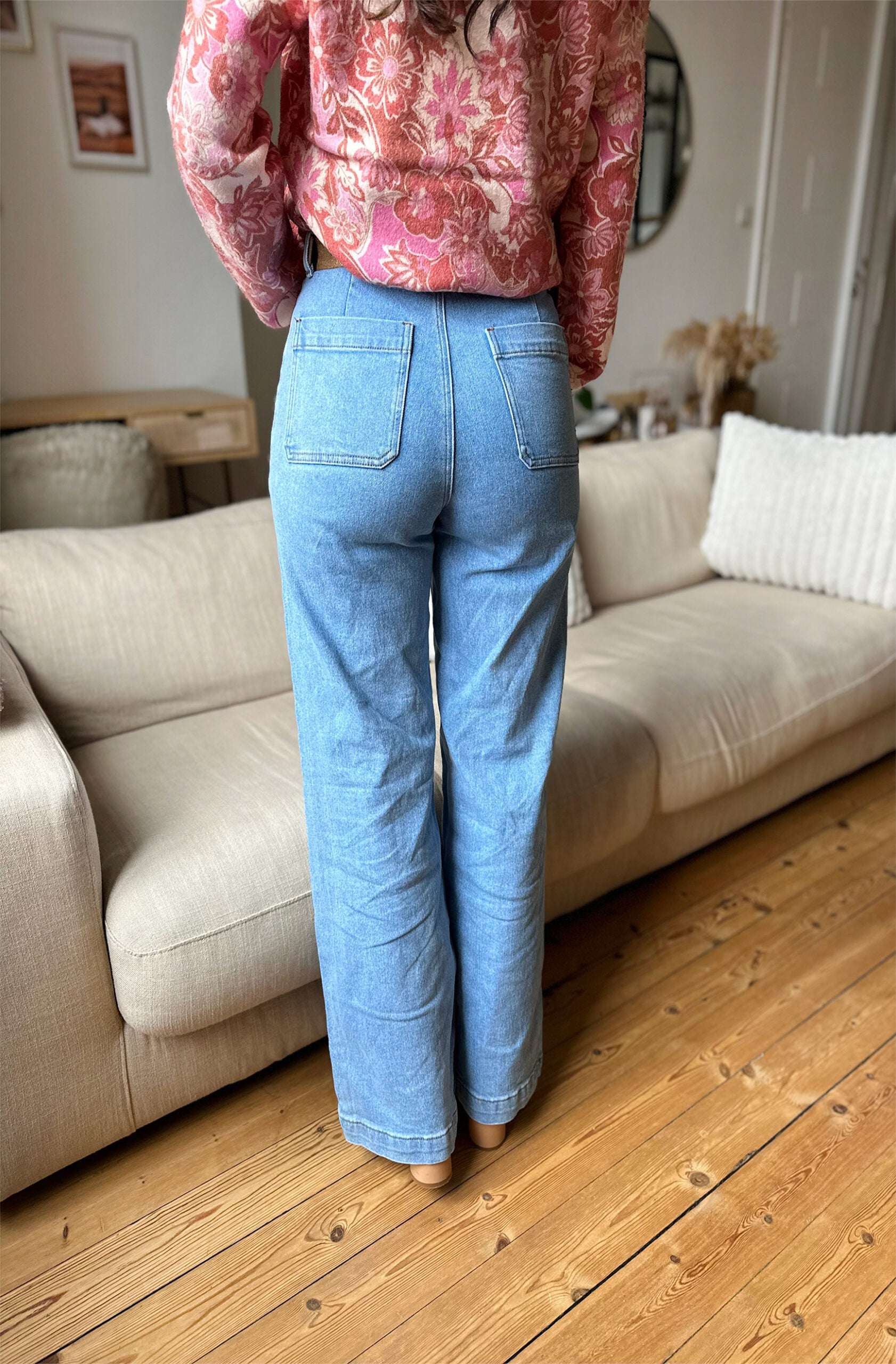 HANNA est notre jean ultra tendance à la coupe flare et taille haute ! Il va vous sublimer grâce à sa taille haute et coupe évasée.