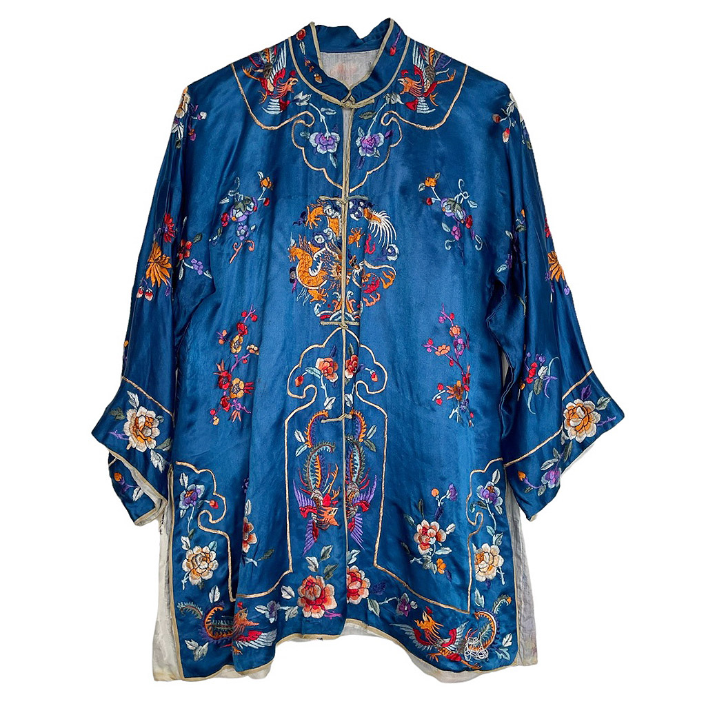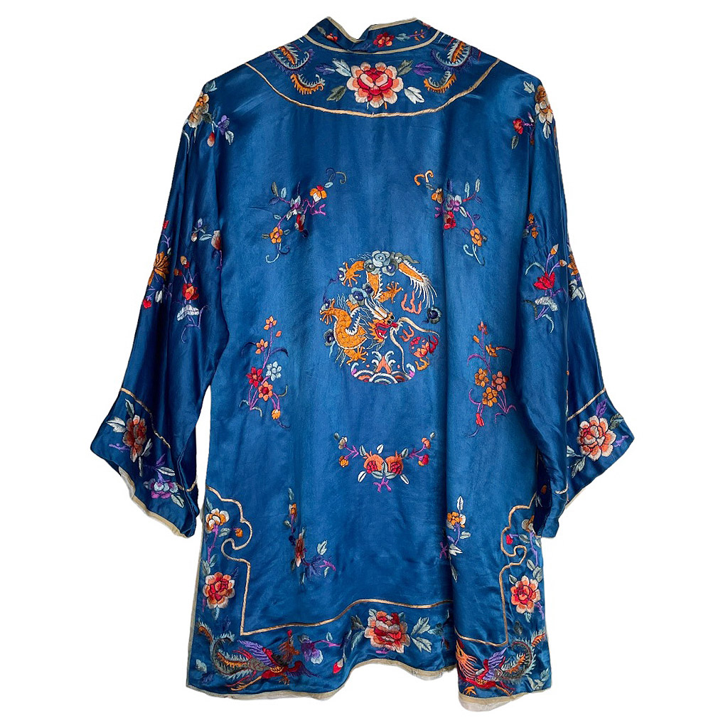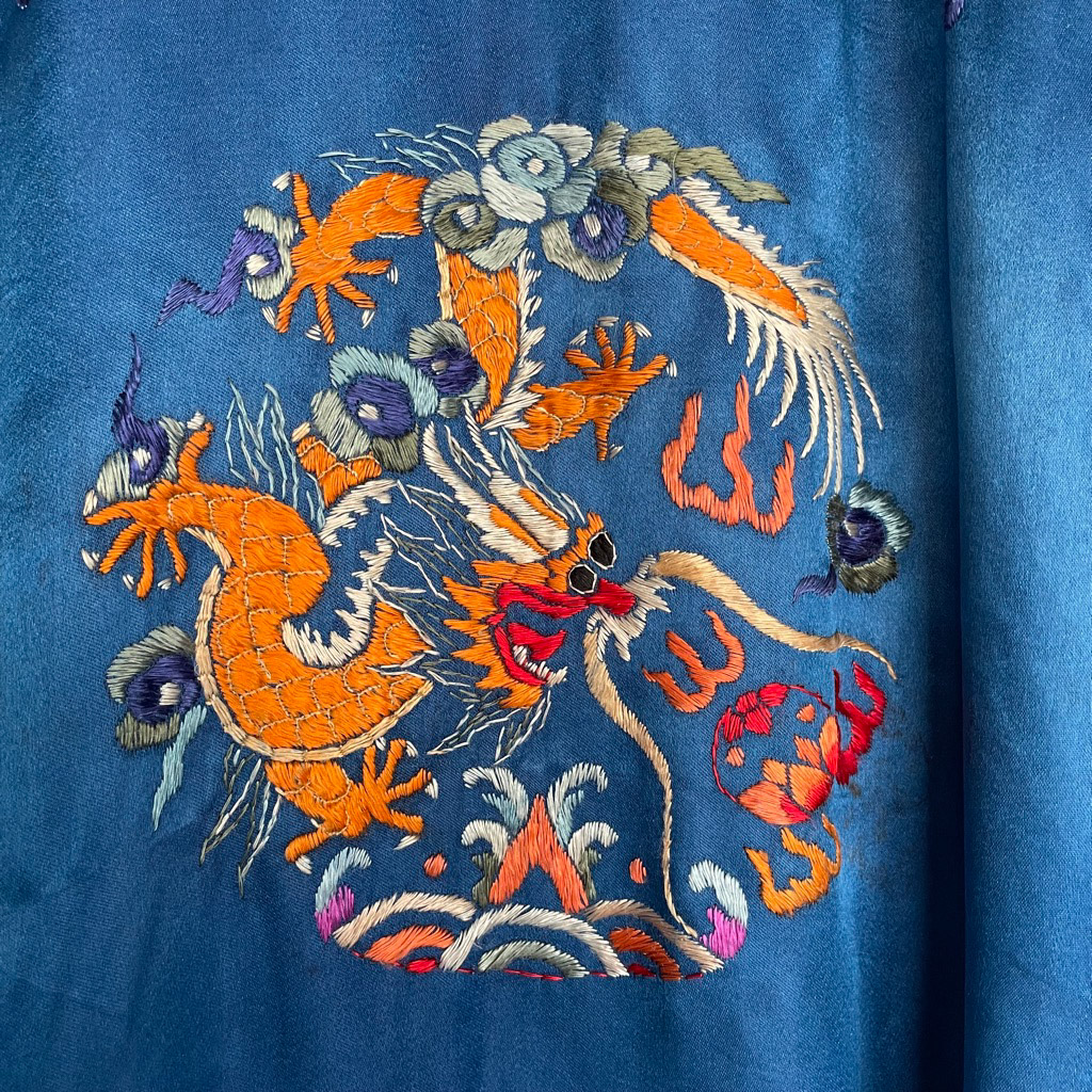Kimono en soie chinois Kimono ancien chinois en soie court brodé Elephant Paris vintage années 70, taille S/M Elephant Paris Vintage Légères traces par endroits (voir photos)