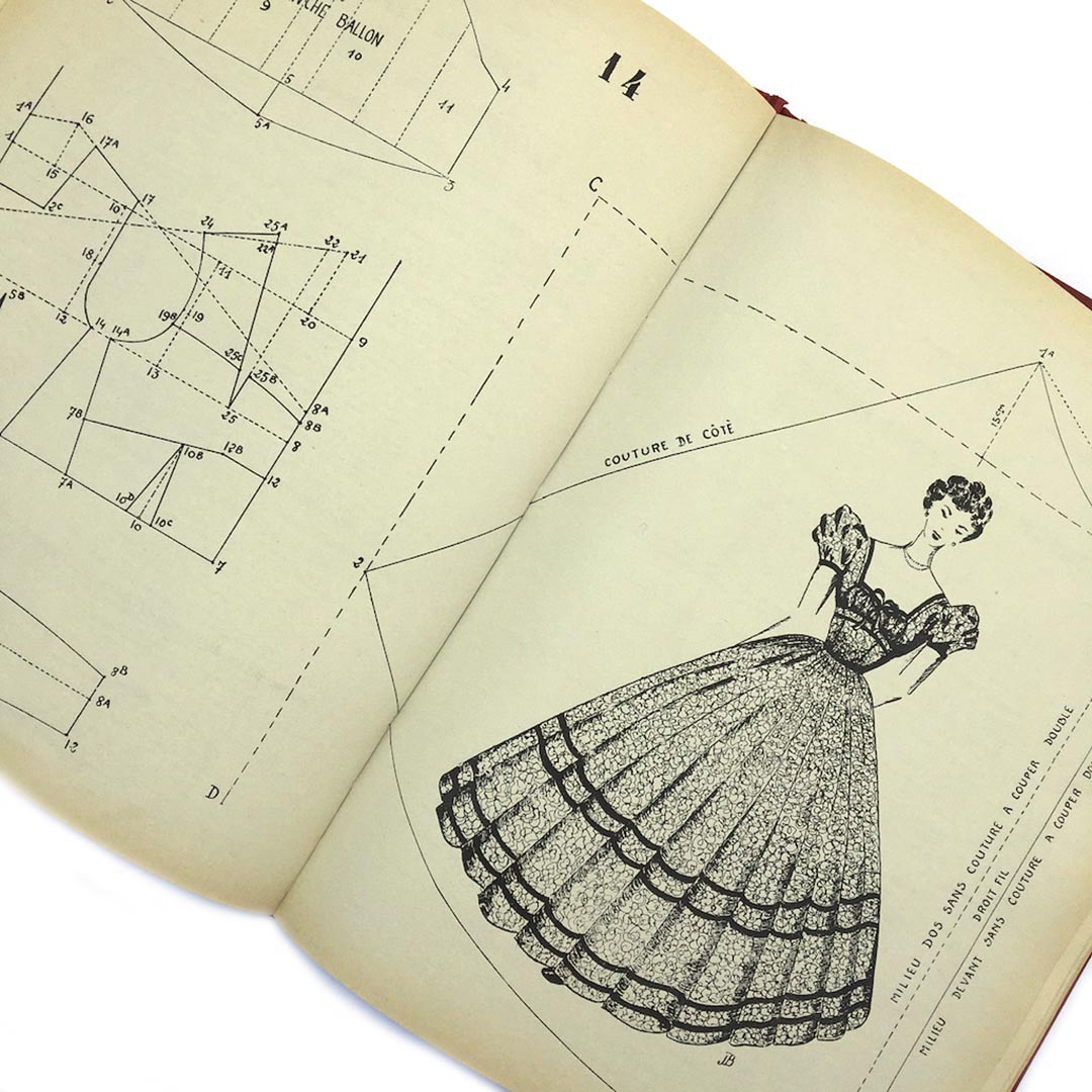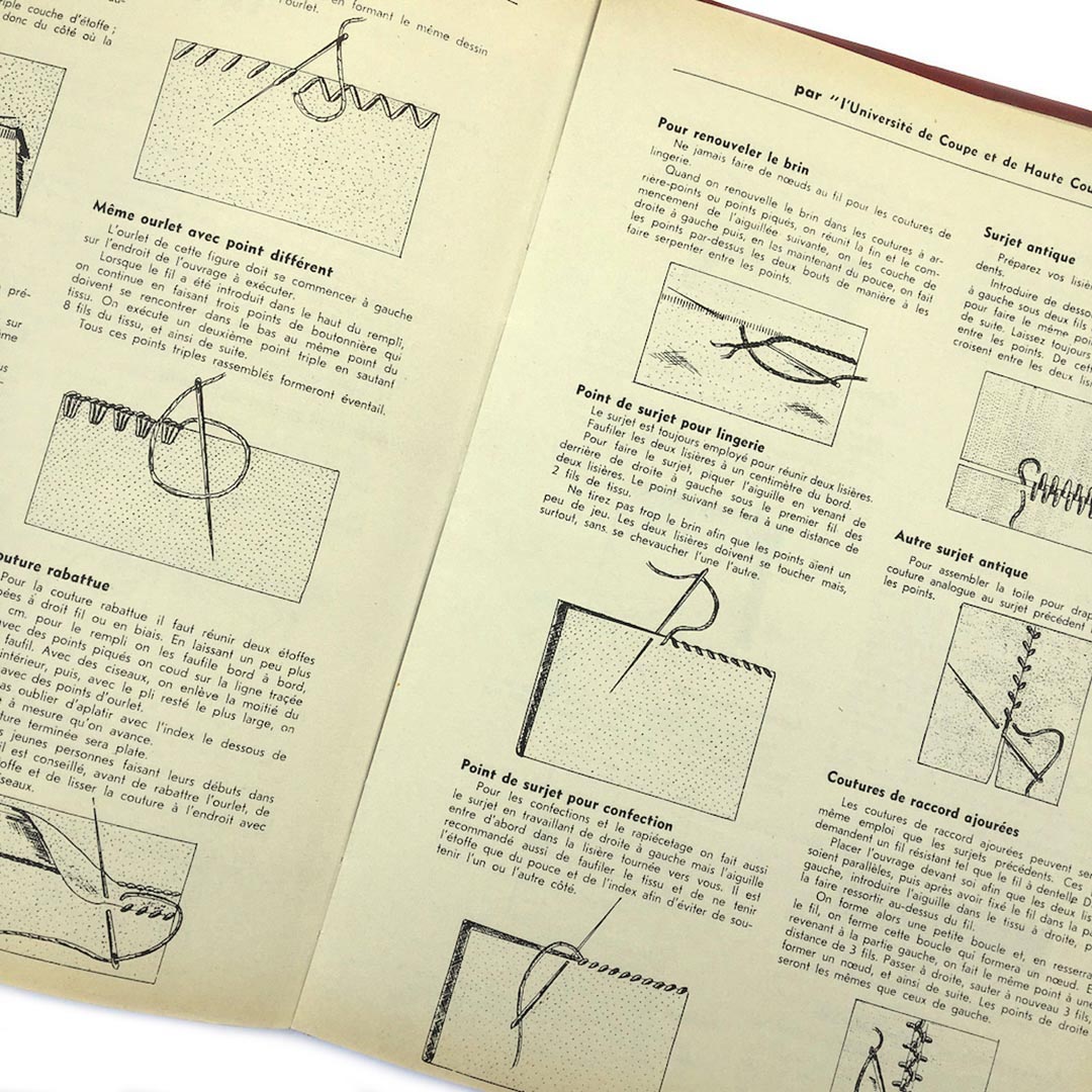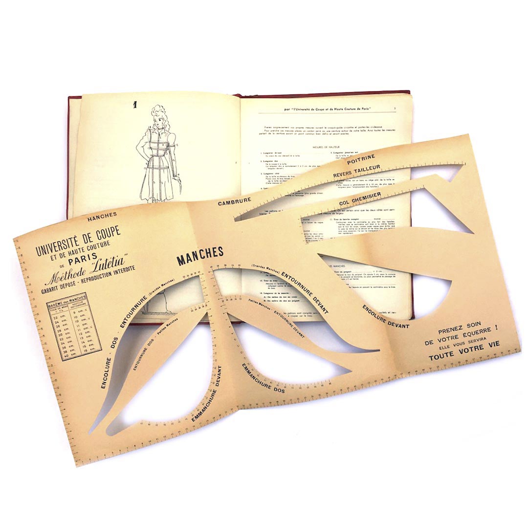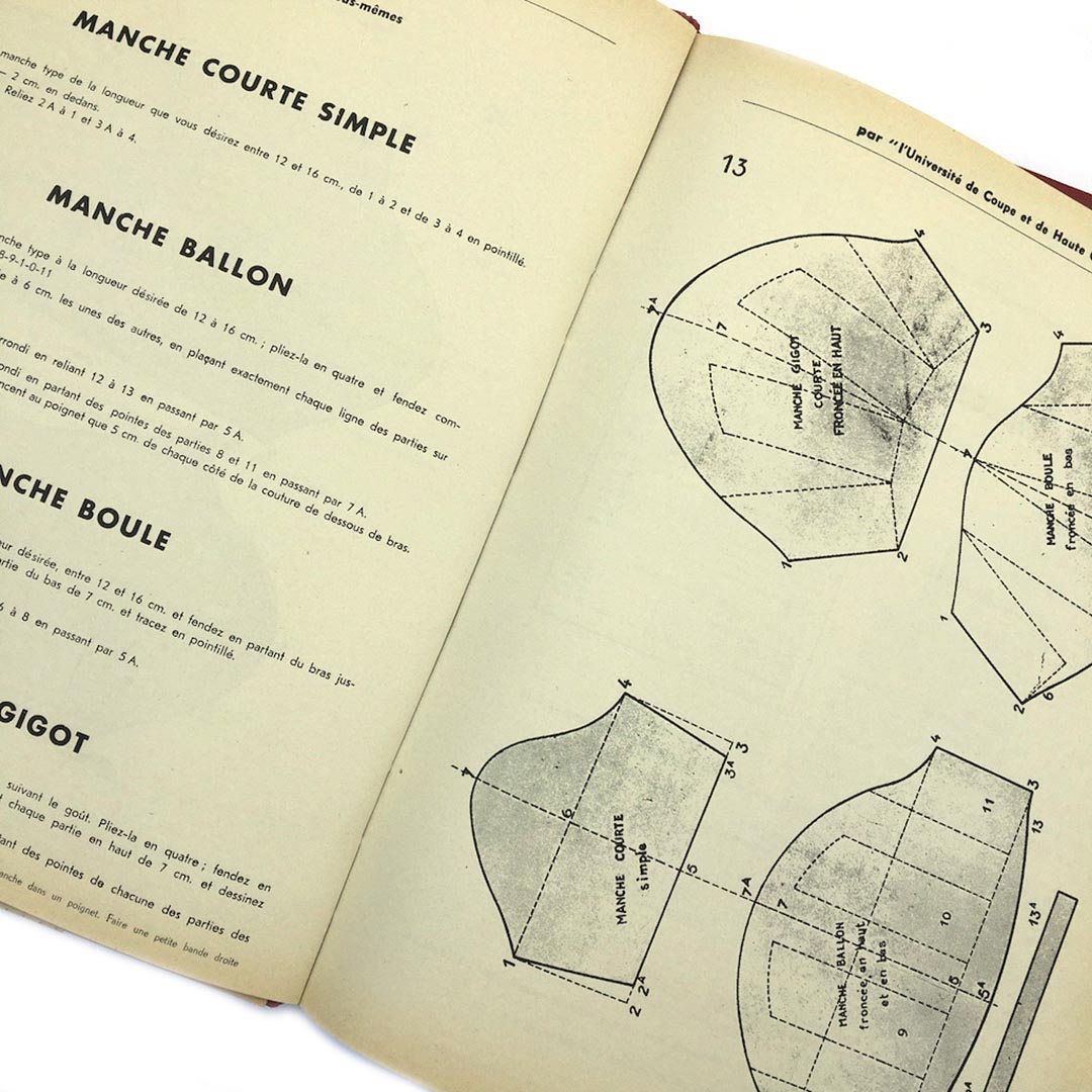 La coupe et la couture Elephant Paris Vintage L’art de la coupe, de la couture, de la mode et des travaux féminins Format broché cartonné, édité par l’université de coupe et de couture de Paris, 1954, 150 pages, accompagné d’une échelle de gabarit, pour tracer les courbes, emmanchures, encolures… 23,5X31,5cm