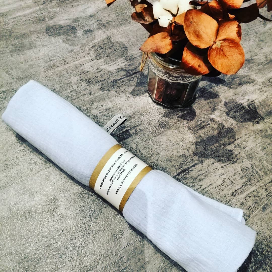 Ce lange de 60 x 60 cm est réalisé en 100% COTON DOUBLE GAZE.