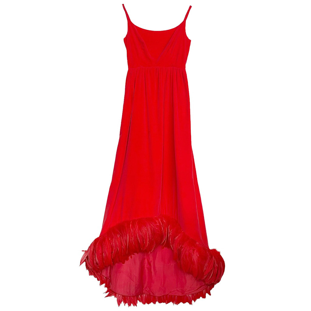 L’Empereur Haute Couture Velours de coton, doublée en coton fin et plumes de coq Elephant Paris Vintage Mesures à plat : Epaules 36cm, Poitrine 41cm, Taille 33cm, Longueur dos 140cm, Longueur dos avec bretelles 156cm, Taille globale 34/36