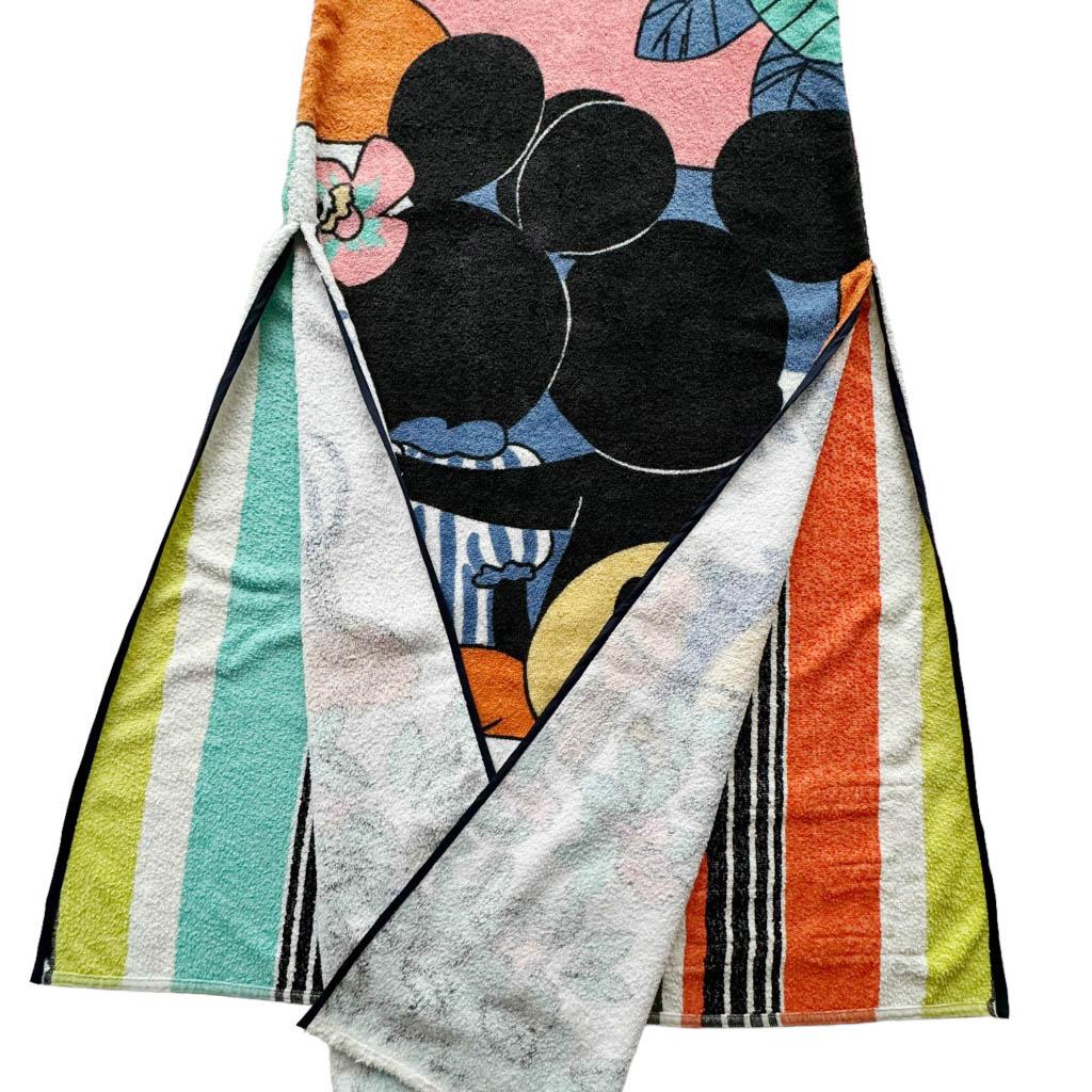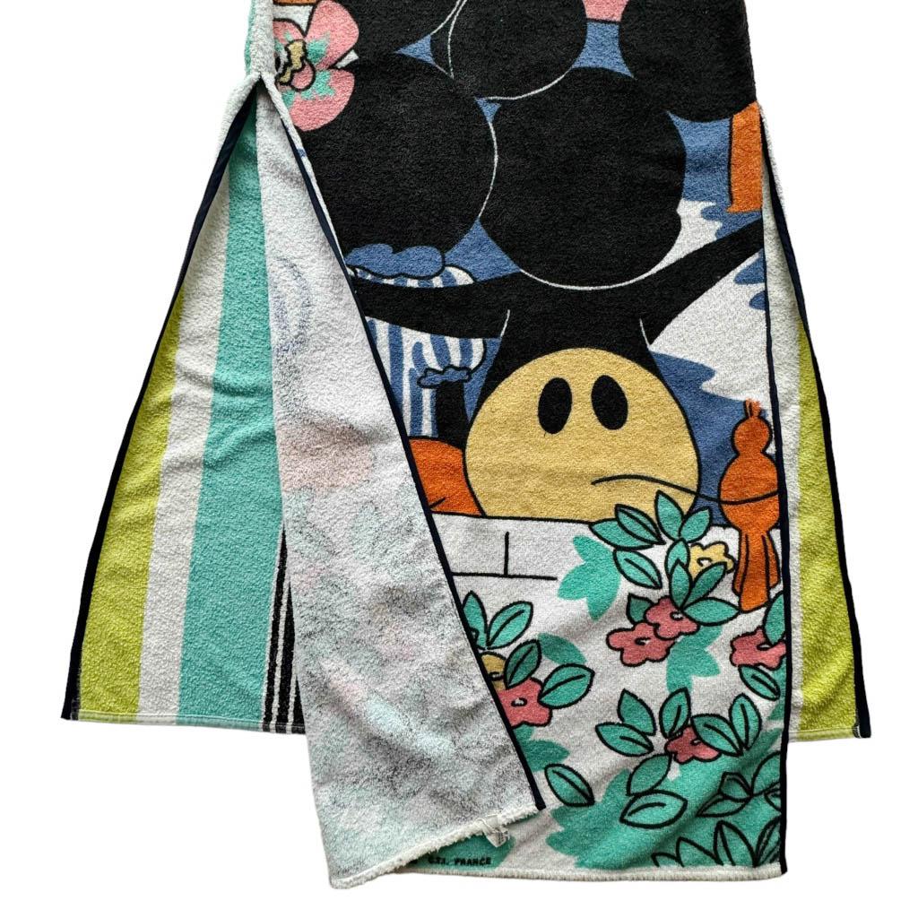 Longue robe éponge Mickey Love Elephant Paris Design Upcycling réalisé avec des matériaux anciens, éponge de coton années 80, Pièce unique Made in France Mesures à plat : Epaules 41cm, Poitrine 47cm, Taille 51cm, Longueur devant 143cm, Longueur dos 137cm, Taille S