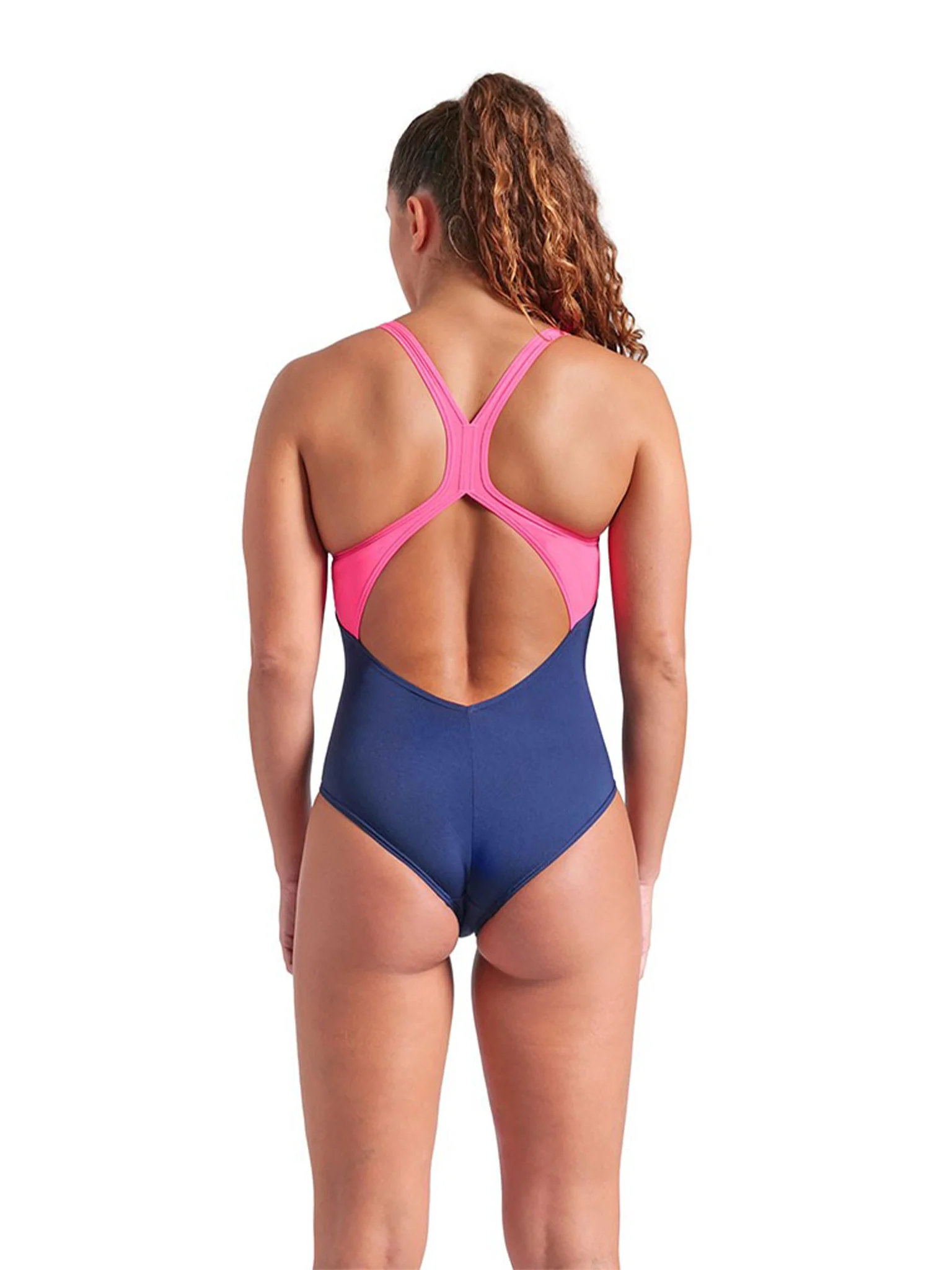 Maillot de bain une-pièce Ripples V Back pour femmes – Marine/Shocking Pink