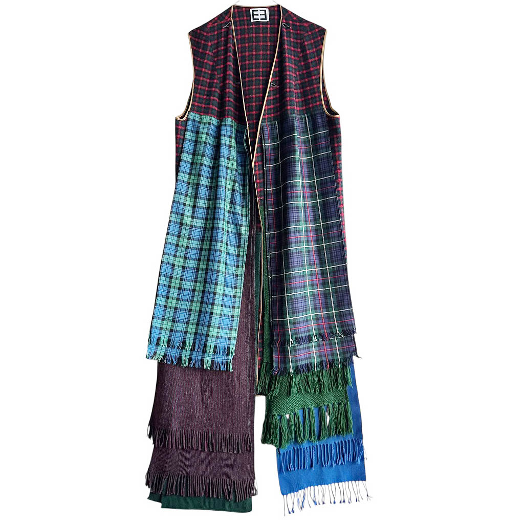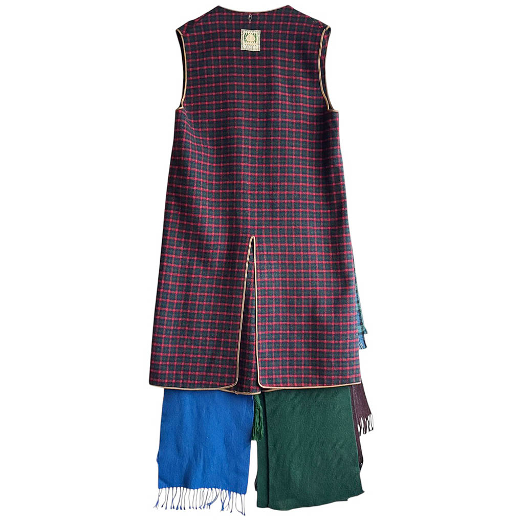 Manteau écharpes upcycling N3 Elephant Paris Design Manteau Écharpe Upcycling N3 – Pièce unique fabriquée à Paris – Chaque manteau Elephant Paris est numéroté Travail d’upcycling réalisé à partir d’une doublure de trench coat classique et vintage en pure laine. Ce manteau gilet sans manches réinvente l’élégance britannique à travers un assemblage minutieux de six écharpes en pure laine tartan écossais et mohair écossais.Il offre une texture riche, un tombé souple et un confort incomparable. Très chaud et très agréable à porter, il accompagne la silhouette tout en laissant une grande liberté de mouvement. Ouvert devant, sans boutonnage, fendu au…