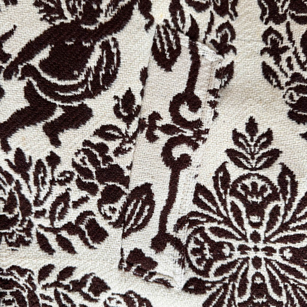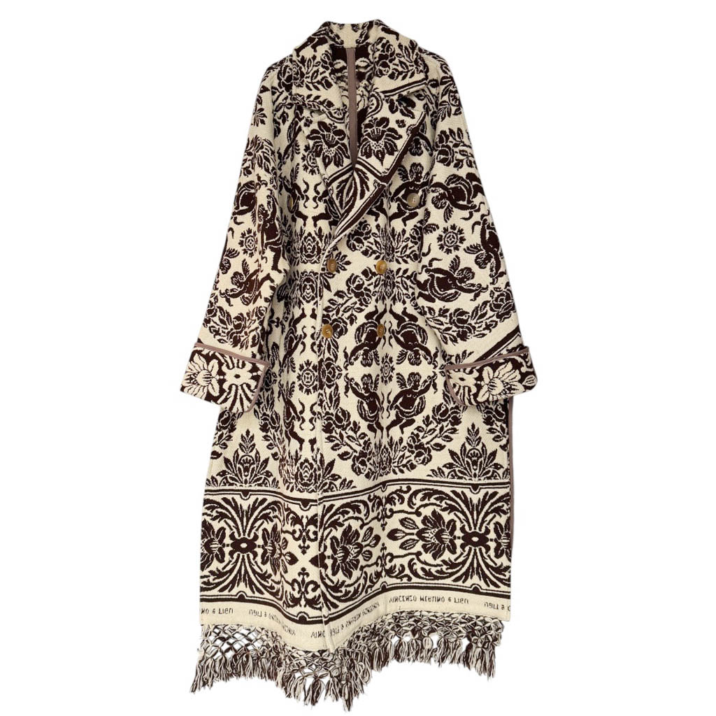 Manteau OV BAT Angels N2 Elephant Paris Design Manteau O W L – BAT – Taille Unique – Oversize Pièce unique fabriquée à Paris, le manteau O W L – B A T incarne l’esprit d’Elephant Paris : des créations singulières réalisées à partir de matériaux anciens et nobles, soigneusement sélectionnés pour leur caractère et leur histoire. Ce modèle est confectionné dans une ancienne couverture épaisse en pure laine brute, au double tissage, dont le motif recto verso est inversé et bicolore, datant des années 1 9 7 0, au tombé dense et structuré. Les finitions sont gansées d’un biais…