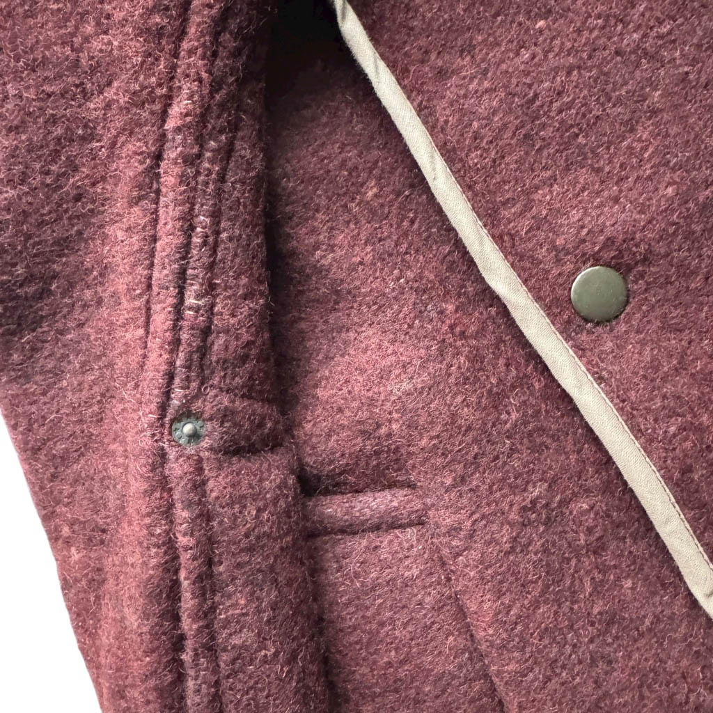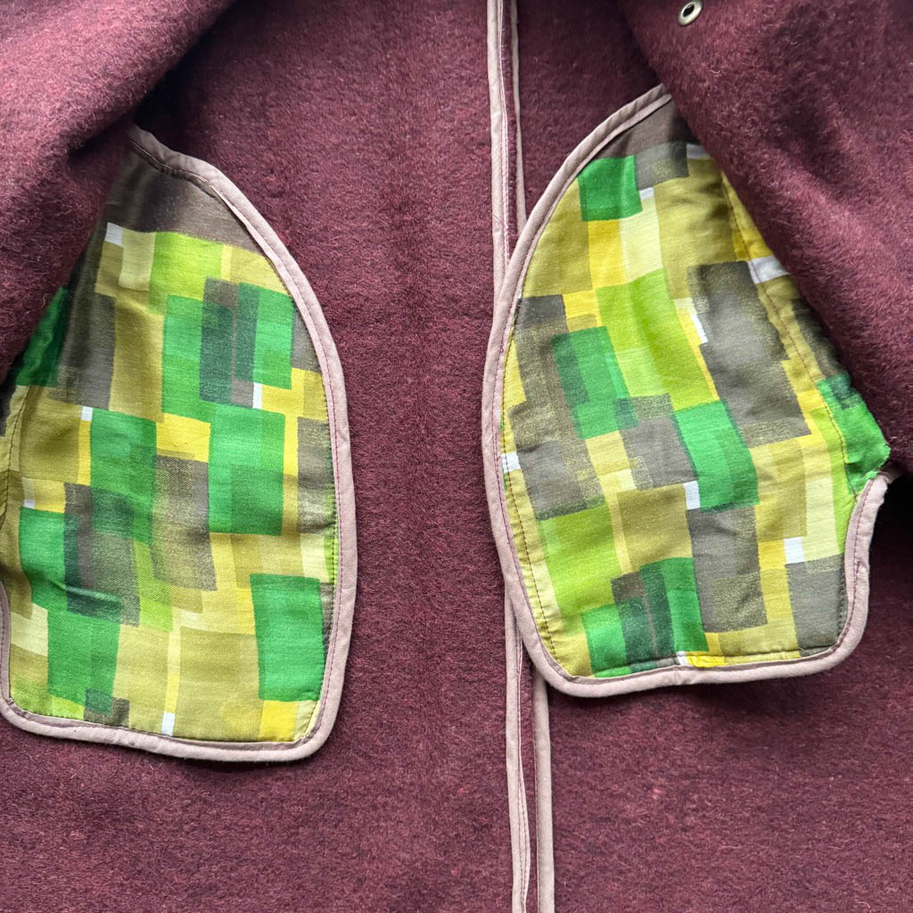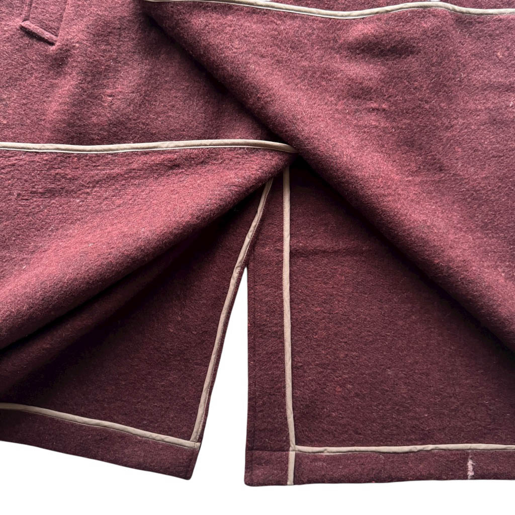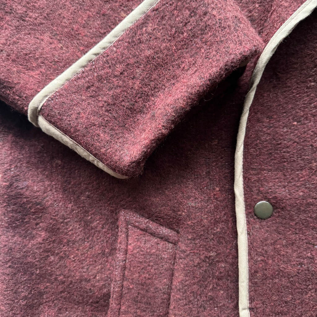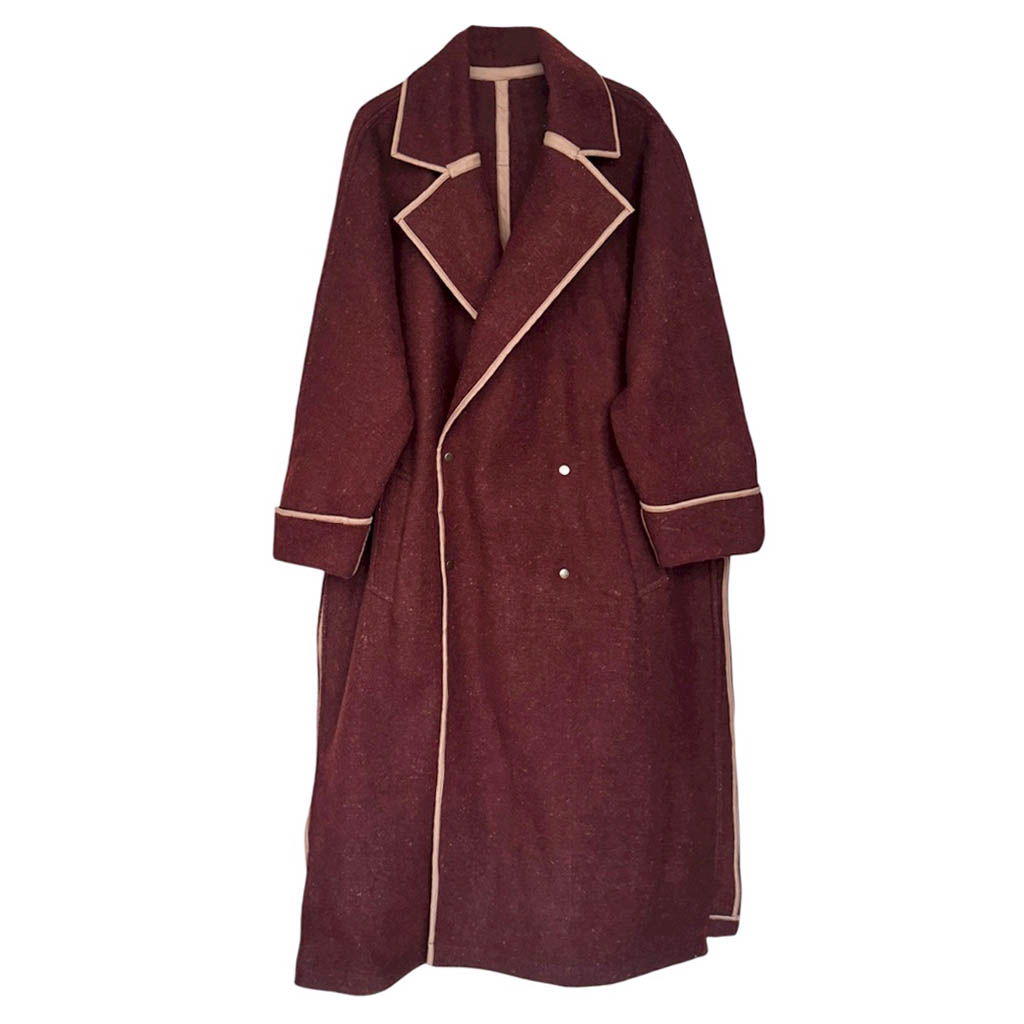 Manteau OV BAT bordeaux N1 Elephant Paris Design Manteau O W L – BAT – Taille Unique – Oversize Pièce unique fabriquée à Paris, le manteau O W L – B A T incarne l’esprit d’Elephant Paris : des créations singulières réalisées à partir de matériaux anciens et nobles, soigneusement sélectionnés pour leur caractère et leur histoire. Ce modèle est confectionné dans une ancienne couverture en pure laine brute, très chaude et épaisse datant des années 1 9 4 0, au tombé dense et structuré. Les finitions sont gansées d’un biais de coton couleur beige, soulignant la qualité du montage…