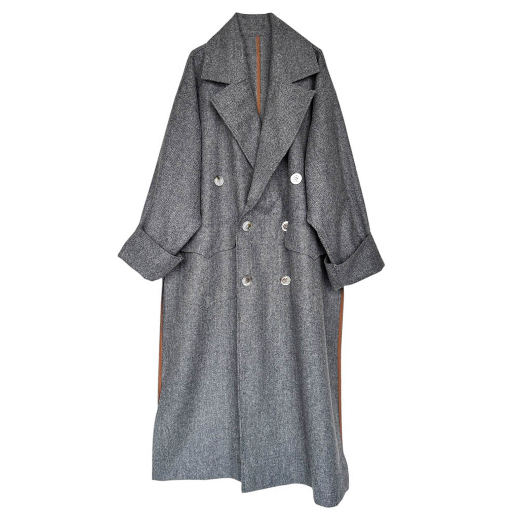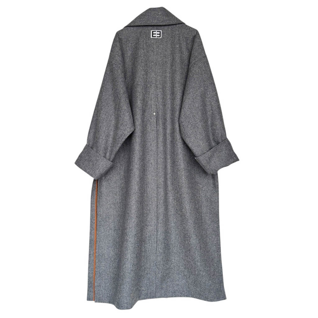 Manteau OV Owl lainage chevrons N 13 Elephant Paris Design Manteau OWL – Pure laine – Taille Unique Oversize Pièce unique fabriquée à Paris, le manteau O W L incarne l’esprit d’Elephant Paris : des créations singulières réalisées à partir de matériaux anciens et nobles, soigneusement sélectionnés pour leur caractère et leur histoire. Ce modèle est confectionné dans un lainage en pure laine des années 1 9 8 0, au tombé dense et structuré. Les finitions sont gansées au biais de coton couleur camel, soulignant le soin apporté du montage et à chaque détail. Le manteau est fendu sur les deux…