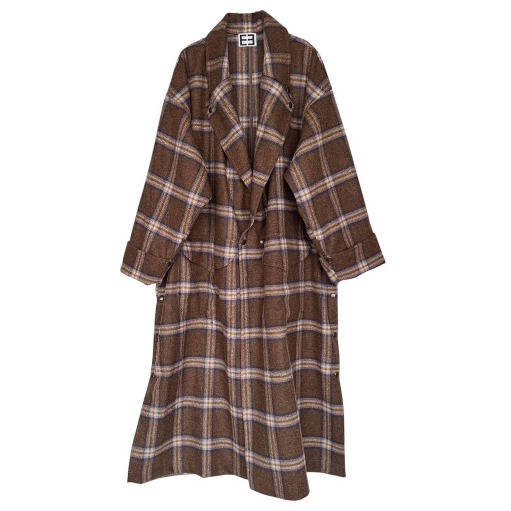 Manteau OV Owl Tartan British Moon Elephant Paris Design Manteau O W L – Tartan anglais pure laine – Taille Unique – Oversize Pièce unique fabriquée à Paris, le manteau O W L incarne l’esprit d’Elephant Paris : des créations singulières réalisées à partir de matériaux anciens et nobles, soigneusement sélectionnés pour leur caractère et leur histoire. Ce modèle est confectionné dans un tartan pure laine anglais, d’époque des années 1 9 8 0, au tombé dense et structuré. Les finitions sont gansées d’un biais de coton couleur camel, soulignant la qualité du montage et le soin apporté à chaque…