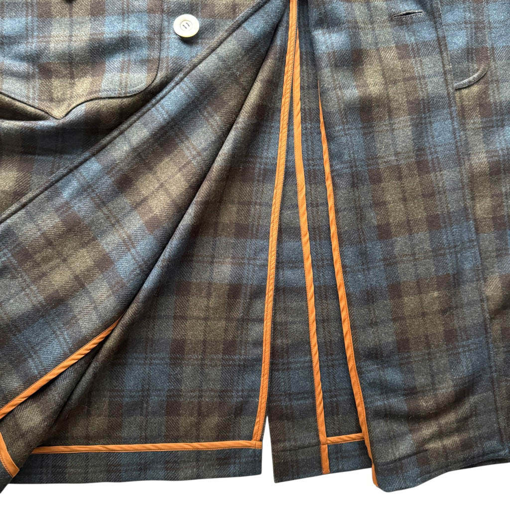 Manteau OV Owl Tartan bruns N 12 Elephant Paris Design Manteau OV Owl Tartan bruns N 12 Elephant Paris Design Manteau OWL – Tartan pure laine – Taille Unique Oversize Pièce unique fabriquée à Paris, le manteau O W L incarne l’esprit d’Elephant Paris : des créations singulières réalisées à partir de matériaux anciens et nobles, soigneusement sélectionnés pour leur caractère et leur histoire. Ce modèle est confectionné dans un tartan en pure laine des années 1 9 8 0, au tombé dense et structuré. Les finitions sont gansées au biais de coton couleur camel, soulignant le soin apporté du montage…