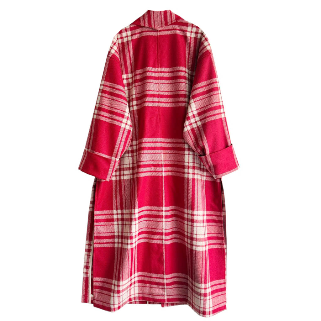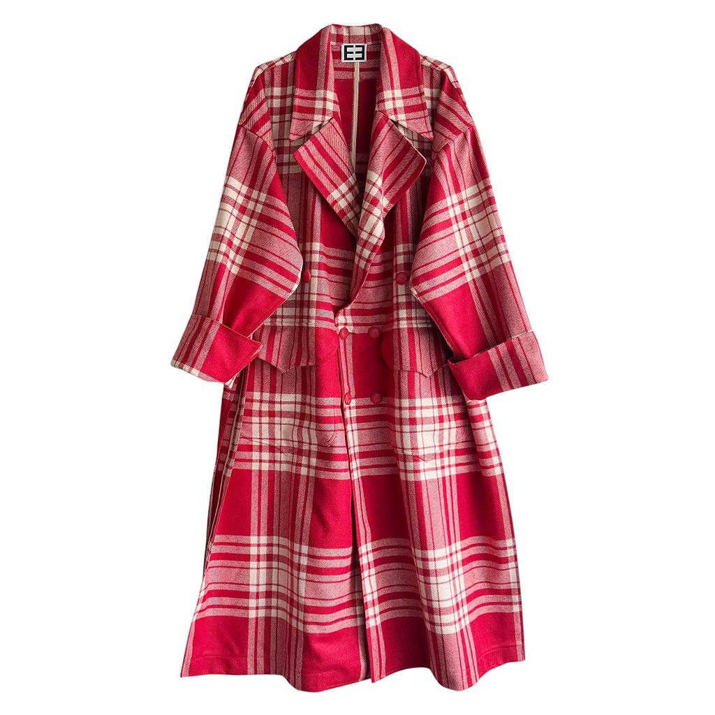 Manteau OV Owl Tartan rouge et blanc Elephant Paris Design Manteau O W L – Tartan pure laine – Taille Unique – Oversize Pièce unique fabriquée à Paris, le manteau O W L incarne l’esprit d’Elephant Paris : des créations singulières réalisées à partir de matériaux anciens et nobles, soigneusement sélectionnés pour leur caractère et leur histoire. Ce modèle est confectionné avec un tartan pure laine bicolore, d’époque des années 1 9 8 0, au tombé dense et structuré. Les finitions sont gansées d’un biais de coton couleur camel, soulignant la qualité du montage et le soin apporté à chaque…