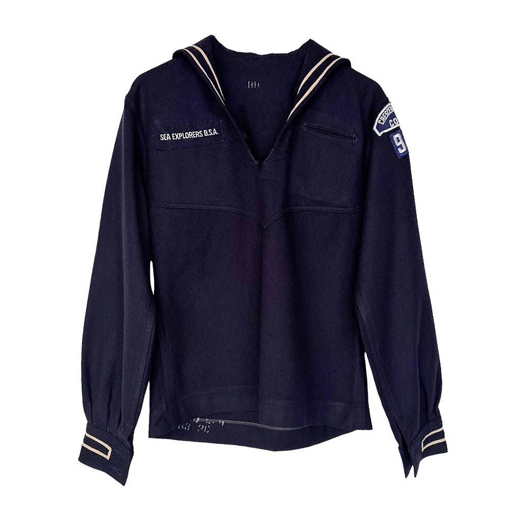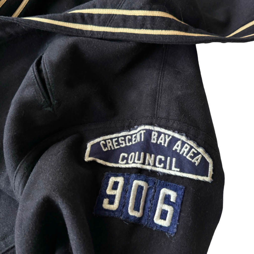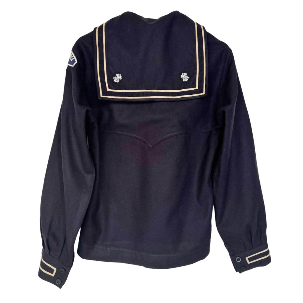 Marinière drap de laine marine Elephant Paris Vintage Années 70, laine, Mesures à plat : Epaules 40cm, Poitrine 49cm, Longueur dos 63cm, Taille S 36