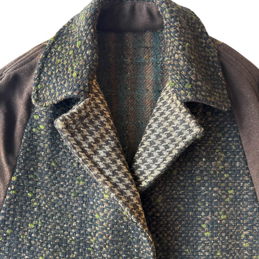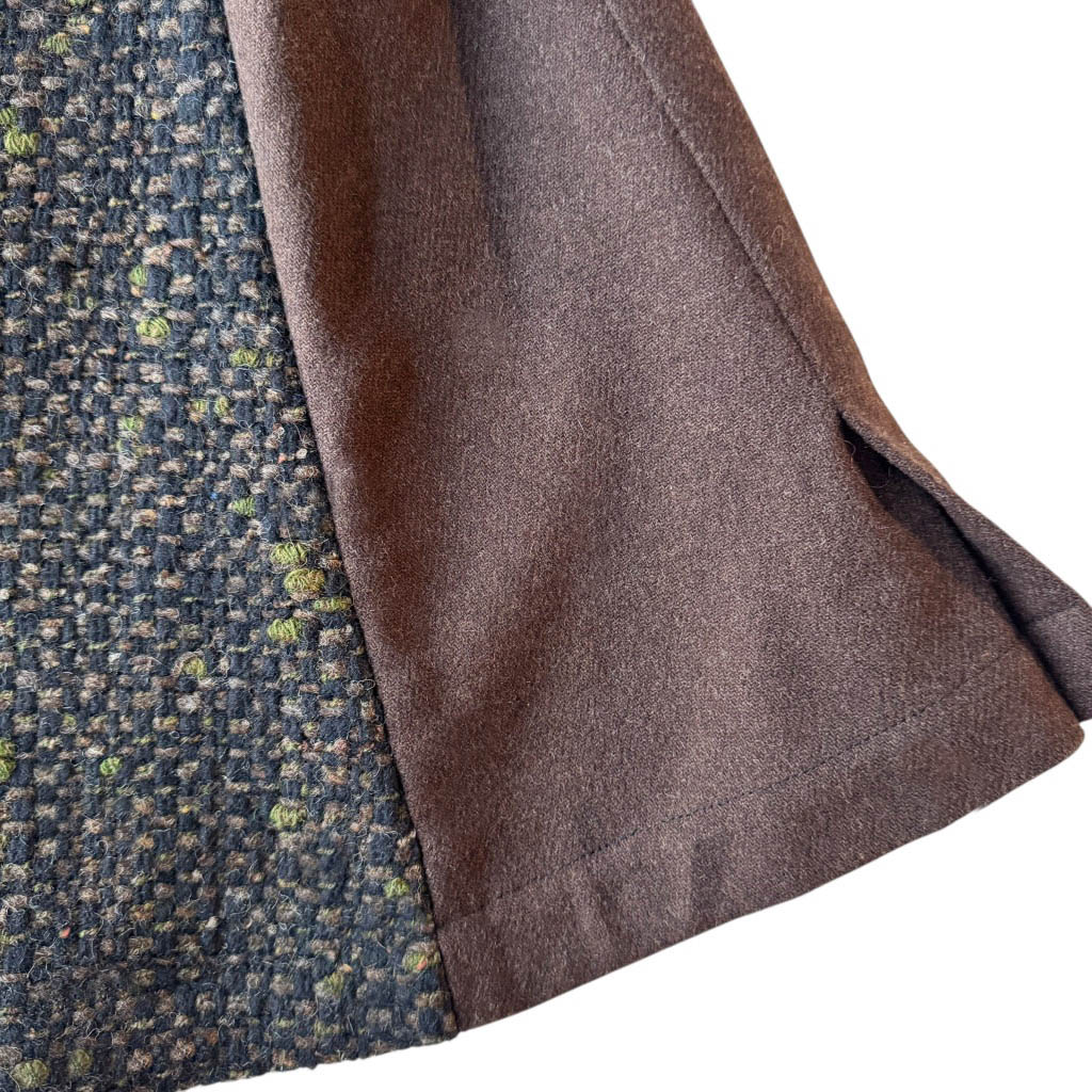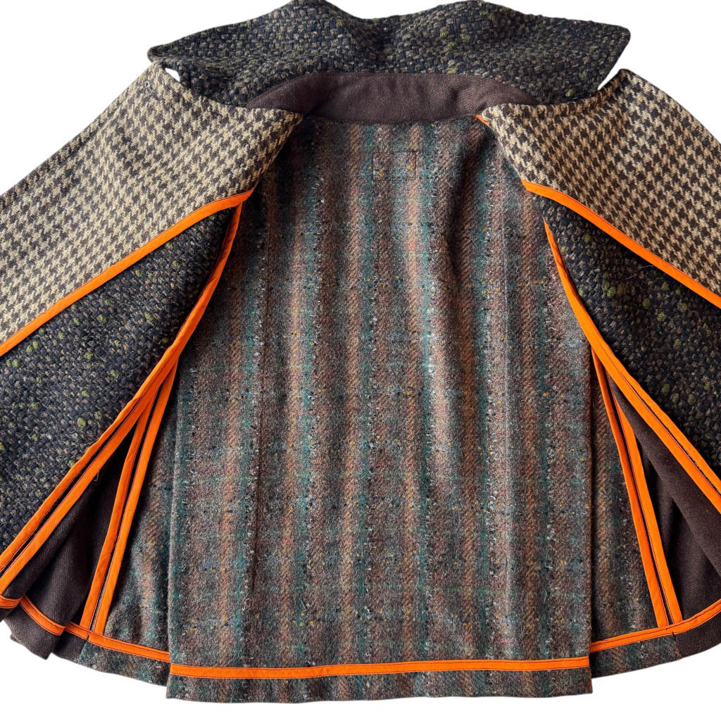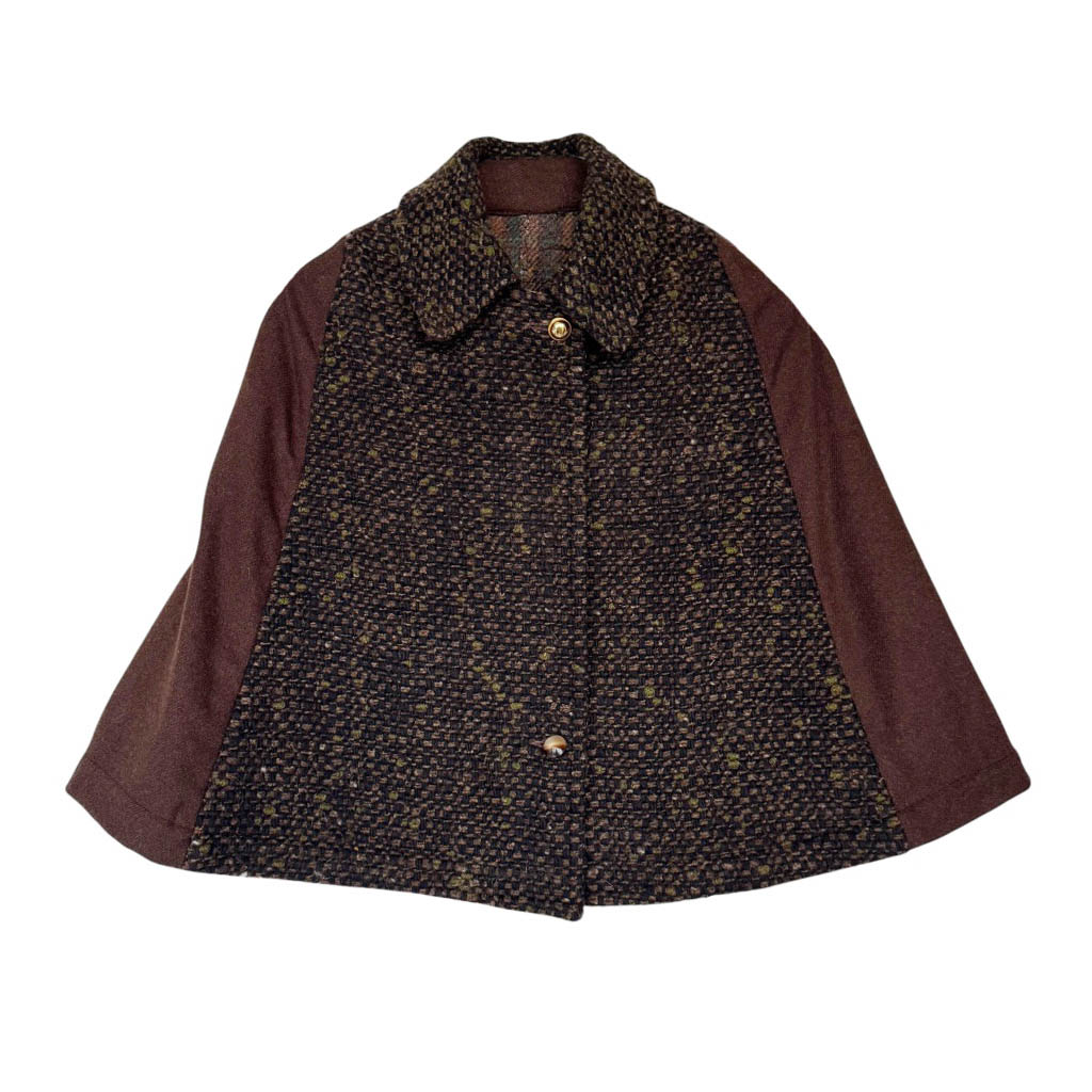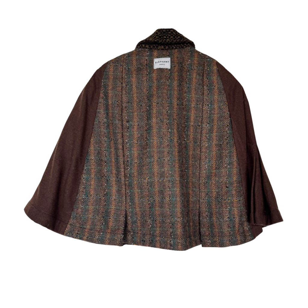Mini-Cape lainage N1 Elephant Paris Design Design réalisé avec des matériaux anciens, drap de laine vintages des années 1 9 7 0/ 1 9 8 0, boutons bijoux neufs d’époque années 1 9 7 0, finitions intérieures gansées au biais de coton, Pièce unique, Made in Paris Chaque mini-cape est numérotée et fabriquée à Paris. Tombé structuré et à la texture riche. Son tissu chiné aux nuances profondes apporte chaleur et caractère, tandis que sa coupe courte évoque une élégance intemporelle. Une pièce idéale pour la mi-saison, à porter en superposition ou non, entre esprit vintage chic et allure contemporaine.…