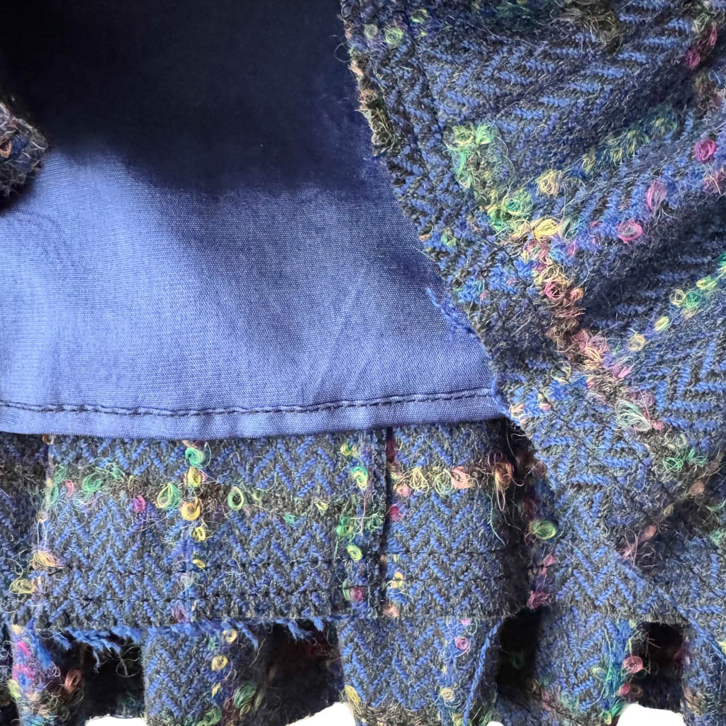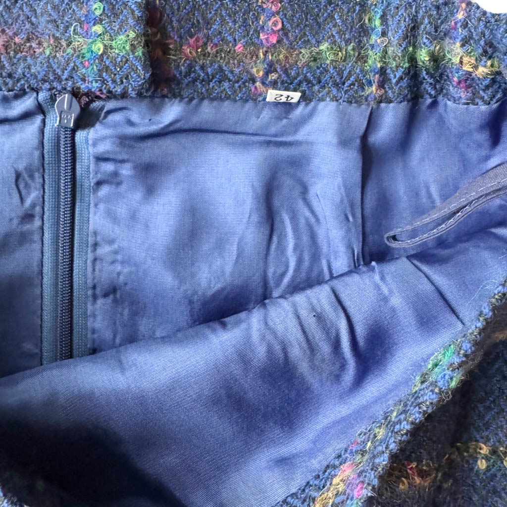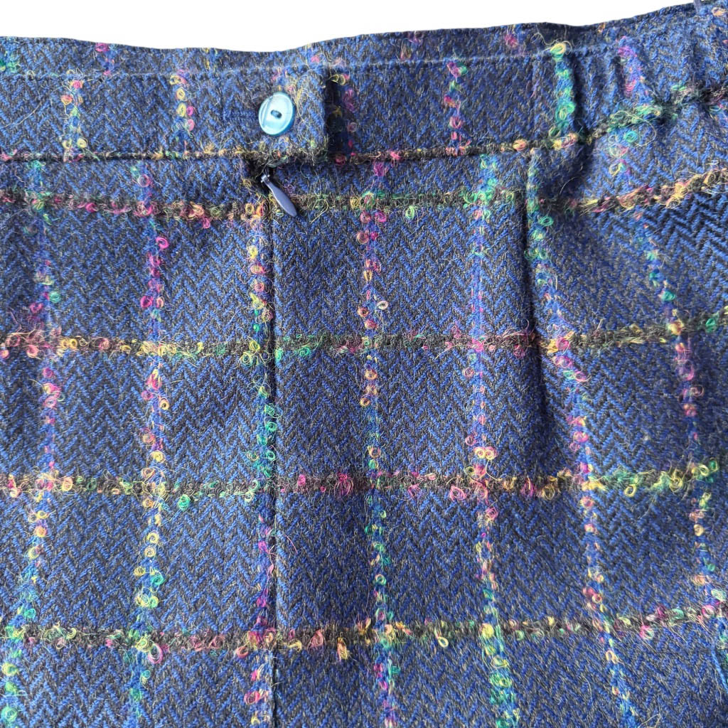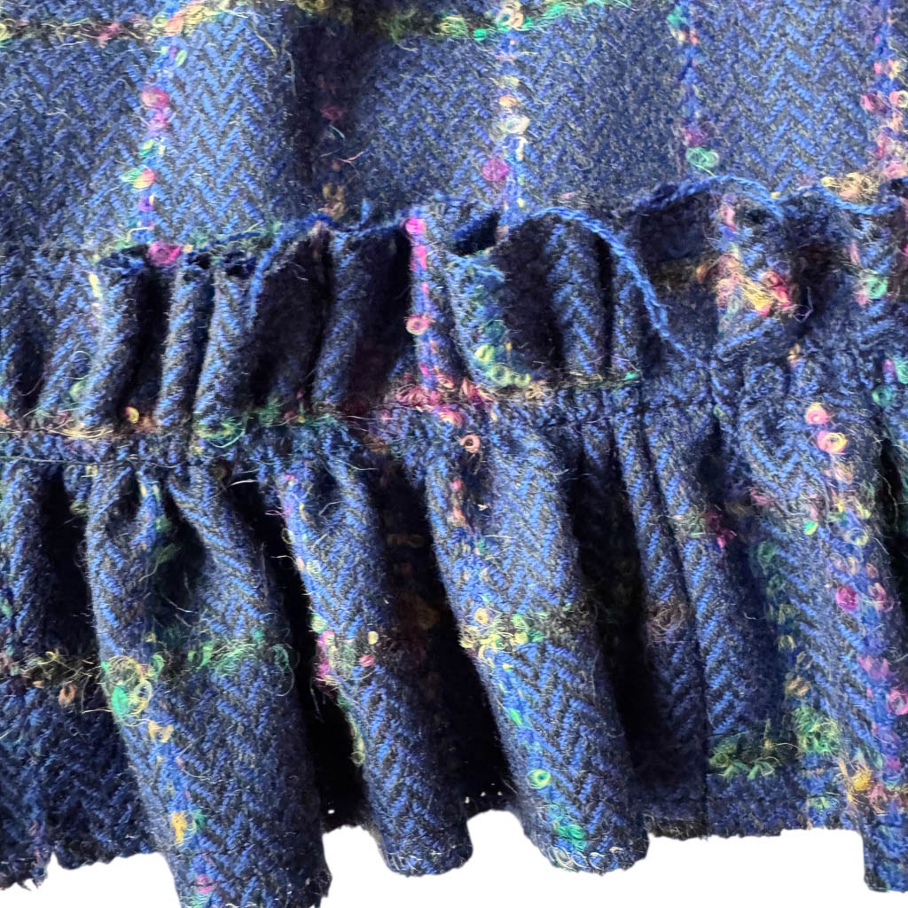 Mini jupe upcycling N10 Elephant Paris Design Mini-jupe upcyclée d’une jupe droite, sans marque, vintage datant des années 1 9 8 0 – 1 0 0 % pure laine, pièce unique, fabriquée à Paris. Cette mini-jupe est née d’un upcycling créatif, sur une jupe ancienne retravaillée dans notre atelier parisien : une jupe droite transformée en mini-jupe à volant pleine d’allure, confortable, sexy et très féminine, elle incarne l’esprit libre et audacieux de la mode Elephant Paris. Confectionnée en lainage ou en tweed de pure laine, cette mini-jupe conserve ses étiquettes d’origine, quand elle en possède, témoins de son passé.…