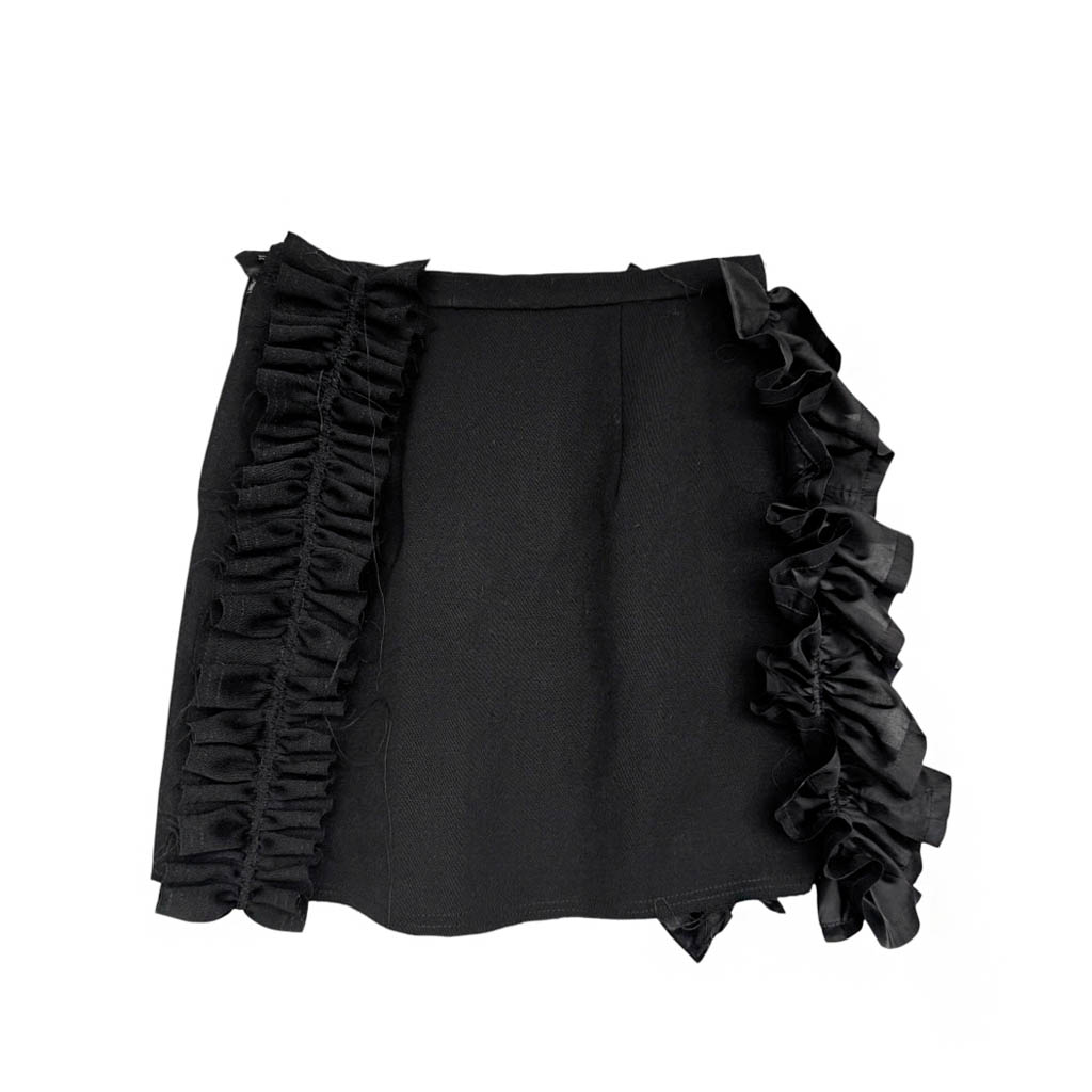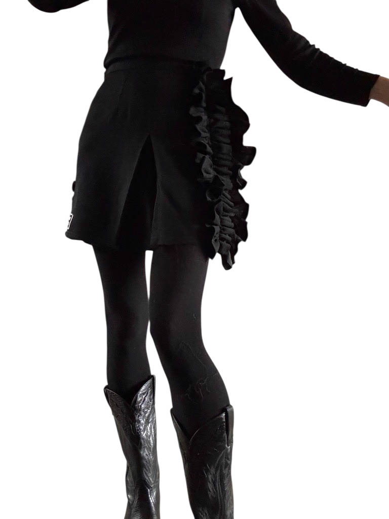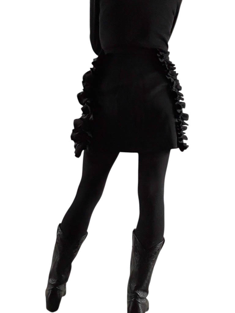 Mini jupe upcycling N14 Elephant Paris Design Mini-jupe upcyclée d’une jupe droite, sans marque, vintage datant des années 1 9 7 0 – composée 1 0 0 % laine, pièce unique, fabriquée à Paris. Cette mini-jupe est née d’un upcycling créatif, sur une jupe ancienne retravaillée dans notre atelier parisien : une jupe droite transformée en mini-jupe à volant pleine d’allure, confortable, sexy et très féminine, elle incarne l’esprit libre et audacieux de la mode Elephant Paris. Confectionnée en lainage ou en tweed de pure laine, cette mini-jupe conserve ses étiquettes d’origine, quand elle en possède, témoins de son passé.…