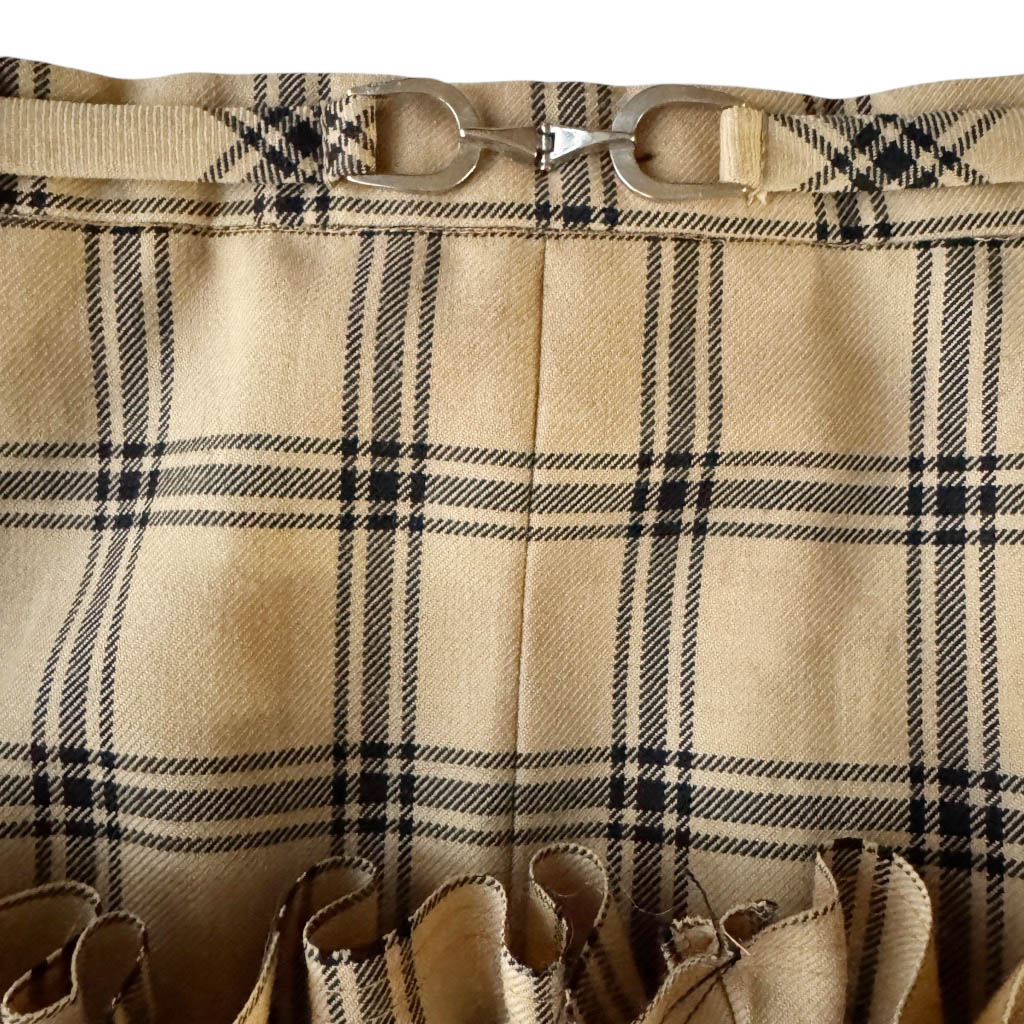 Mini jupe upcycling N2 Elephant Paris Design Mini-jupe upcyclée d’une jupe fendue vintage des années 1 9 7 0, en pure laine Trevira, pièce unique, fabriquée à Paris. Cette mini-jupe est née d’un upcycling créatif, sur une jupe ancienne retravaillée dans notre atelier parisien : une jupe droite transformée en mini-jupe à volant pleine d’allure, confortable, sexy et très féminine, elle incarne l’esprit libre et audacieux de la mode Elephant Paris. Confectionnée en lainage ou en tweed de pure laine, cette mini-jupe conserve ses étiquettes d’origine, quand elle en possède, témoins de son passé. Ou sans étiquette, souvent des jupes de…