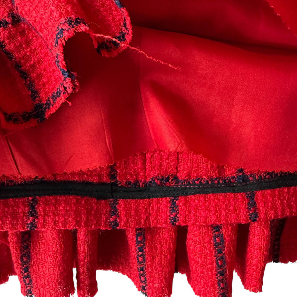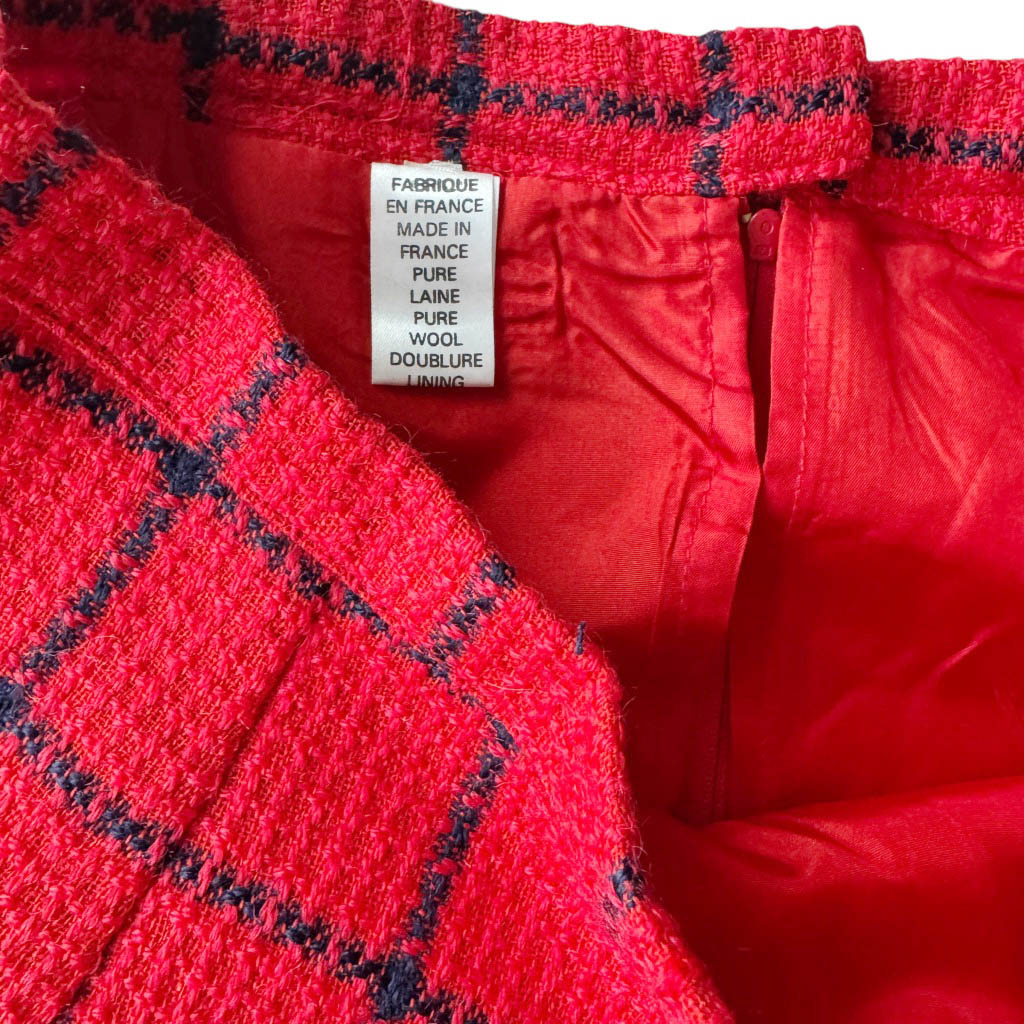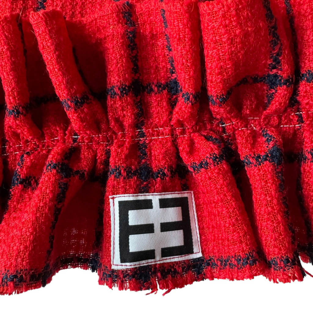 Mini-jupe upcycling N20 Elephant Paris Design Mini-jupe upcyclée d’une jupe droite en lainage marine et rouge, vintage datant des années 1 9 8 0, pièce unique, fabriquée à Paris. Cette mini-jupe est née d’un upcycling créatif, sur une jupe vintage datant des années 1 9 8 0, retravaillée dans notre atelier parisien : une jupe droite transformée en mini-jupe à volant pleine d’allure, confortable, sexy et très féminine, elle incarne l’esprit libre et audacieux de la mode Elephant Paris. Confectionnée en lainage, cette mini-jupe conserve ses étiquettes d’origine, quand elle en possède, témoins de son passé. Ou sans étiquette, souvent des…