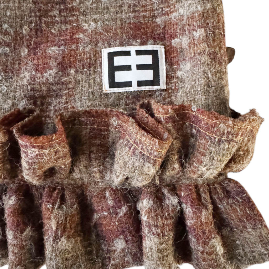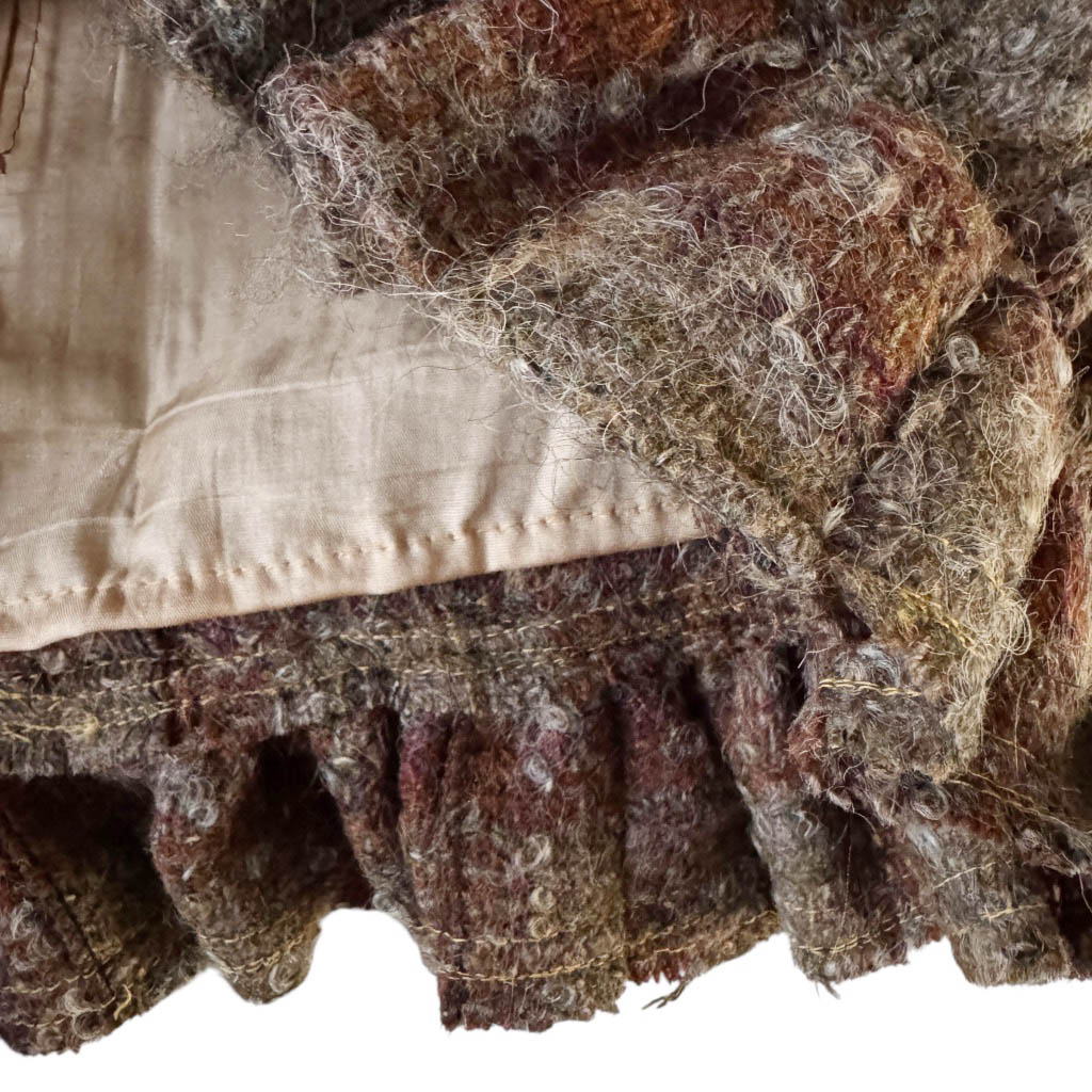 Mini jupe upcycling N4 Elephant Paris Design Mini-jupe upcyclée d’une jupe de couturière, midi simple vintage datant des années 1 9 7 0, en pure laine mohair, pièce unique, fabriquée à Paris. Cette mini-jupe est née d’un upcycling créatif, sur une jupe ancienne retravaillée dans notre atelier parisien : une jupe droite transformée en mini-jupe à volant pleine d’allure, confortable, sexy et très féminine, elle incarne l’esprit libre et audacieux de la mode Elephant Paris. Confectionnée en lainage ou en tweed de pure laine, cette mini-jupe conserve ses étiquettes d’origine, quand elle en possède, témoins de son passé. Ou sans étiquette,…