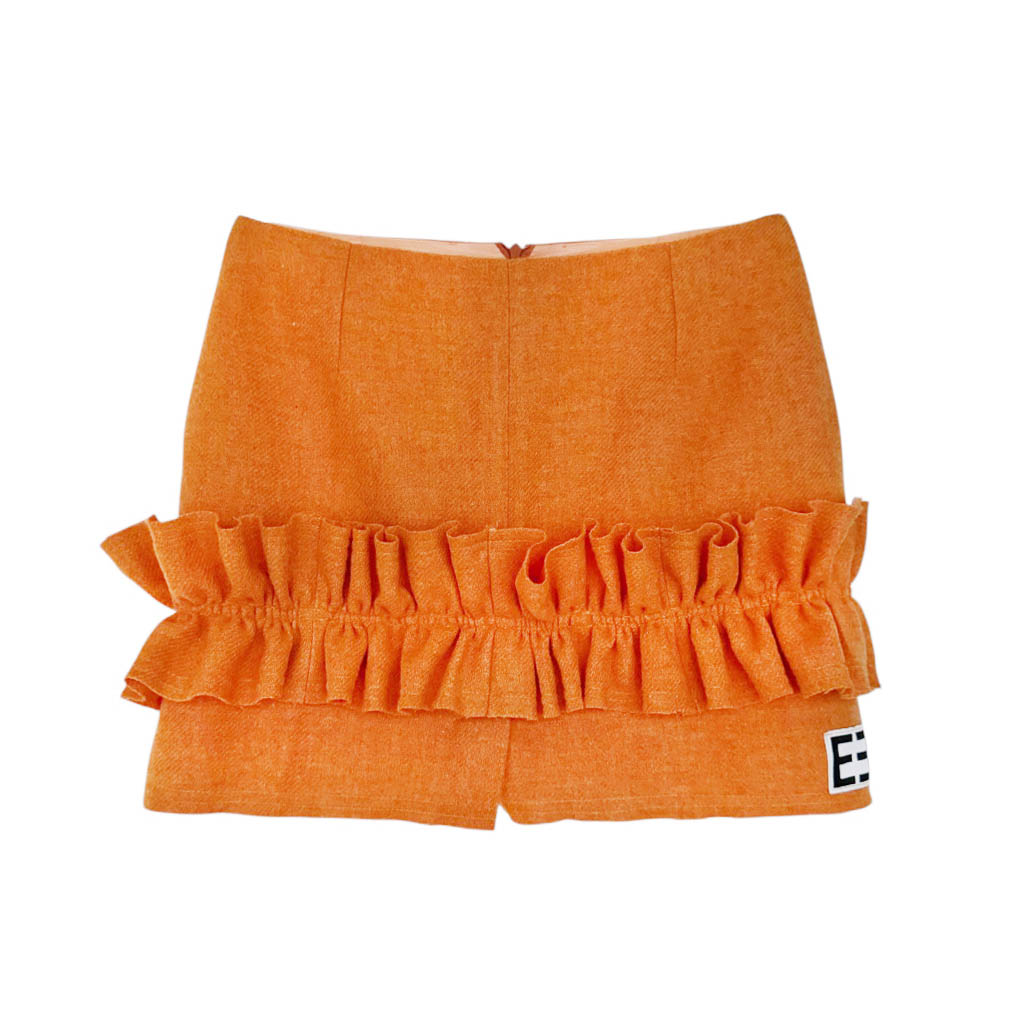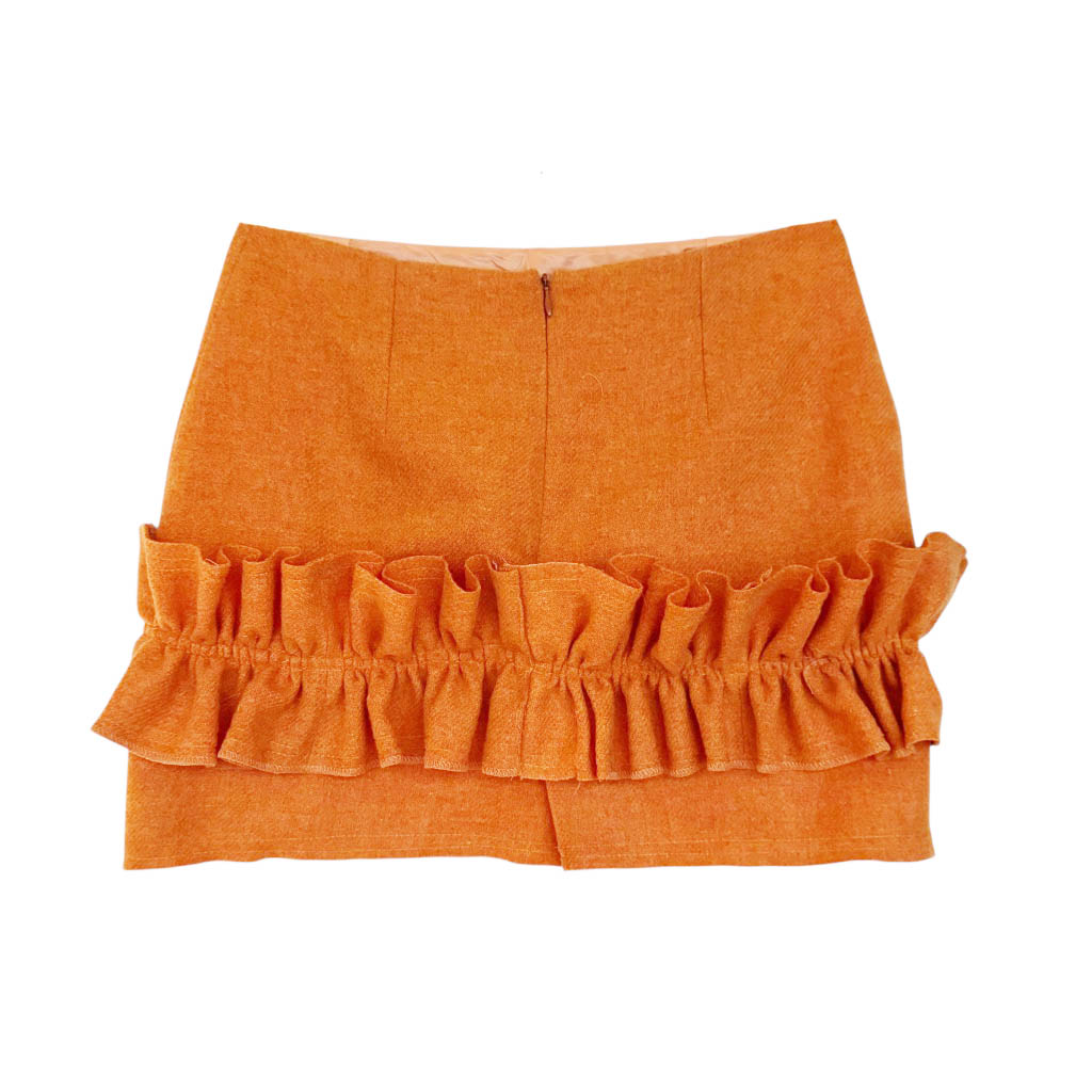 Mini jupe upcycling N7 Elephant Paris Design Mini-jupe upcyclée d’une jupe fendue devant et dos IRENE VAN RYB, vintage des années 1 9 9 0, en pure laine, pièce unique, fabriquée à Paris. Cette mini-jupe est née d’un upcycling créatif, sur une jupe ancienne retravaillée dans notre atelier parisien : une jupe droite transformée en mini-jupe à volant pleine d’allure, confortable, sexy et très féminine, elle incarne l’esprit libre et audacieux de la mode Elephant Paris. Confectionnée en lainage ou en tweed de pure laine, cette mini-jupe conserve ses étiquettes d’origine, quand elle en possède, témoins de son passé. Ou…