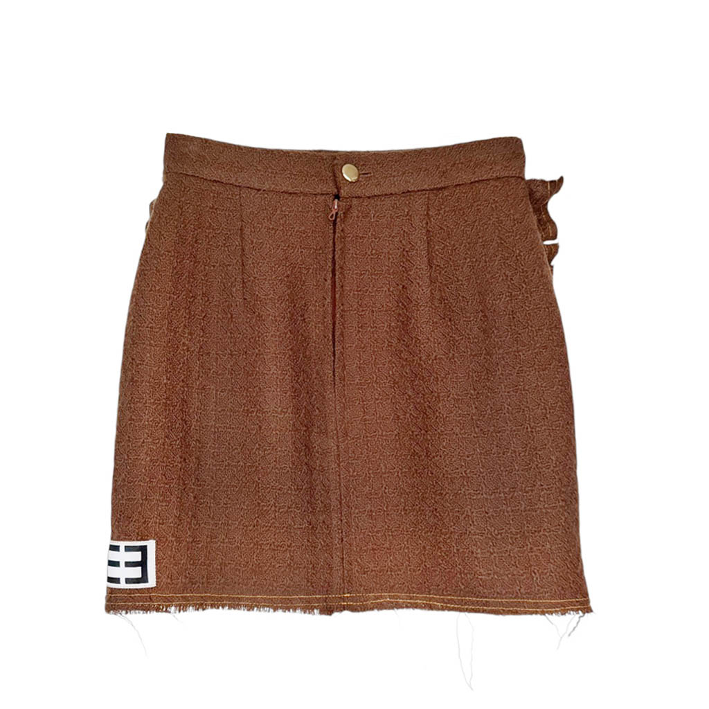 Mini jupe upcycling N8 Elephant Paris Design Mini-jupe upcyclée d’une jupe droite, de la marque CHRISTIANE KOVITZ, vintage datant des années 1 9 8 0, composée de 9 3 % de laine, pièce unique, fabriquée à Paris. Cette mini-jupe est née d’un upcycling créatif, sur une jupe ancienne retravaillée dans notre atelier parisien : une jupe droite transformée en mini-jupe à volant pleine d’allure, confortable, sexy et très féminine, elle incarne l’esprit libre et audacieux de la mode Elephant Paris. Confectionnée en lainage ou en tweed de pure laine, cette mini-jupe conserve ses étiquettes d’origine, quand elle en possède, témoins de…