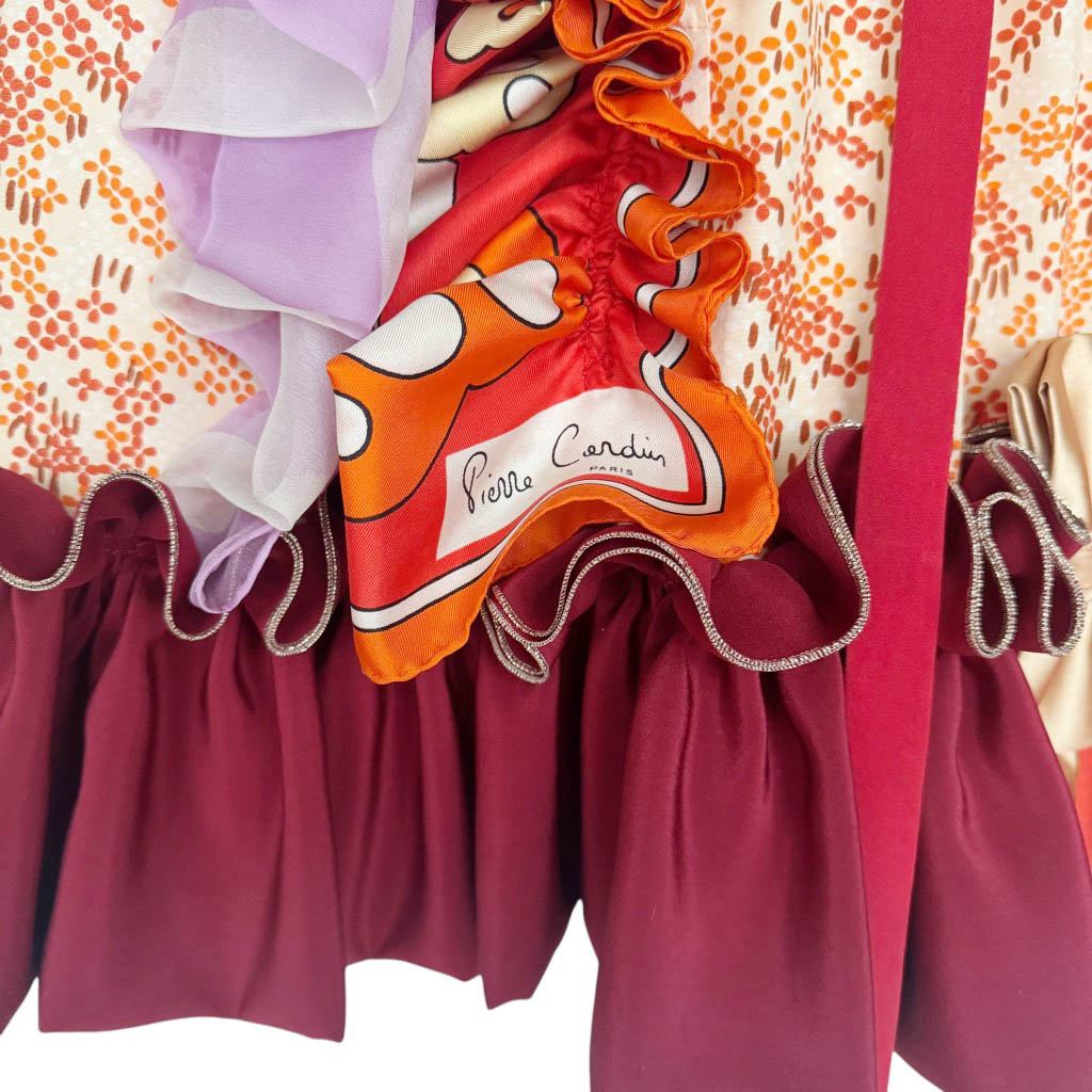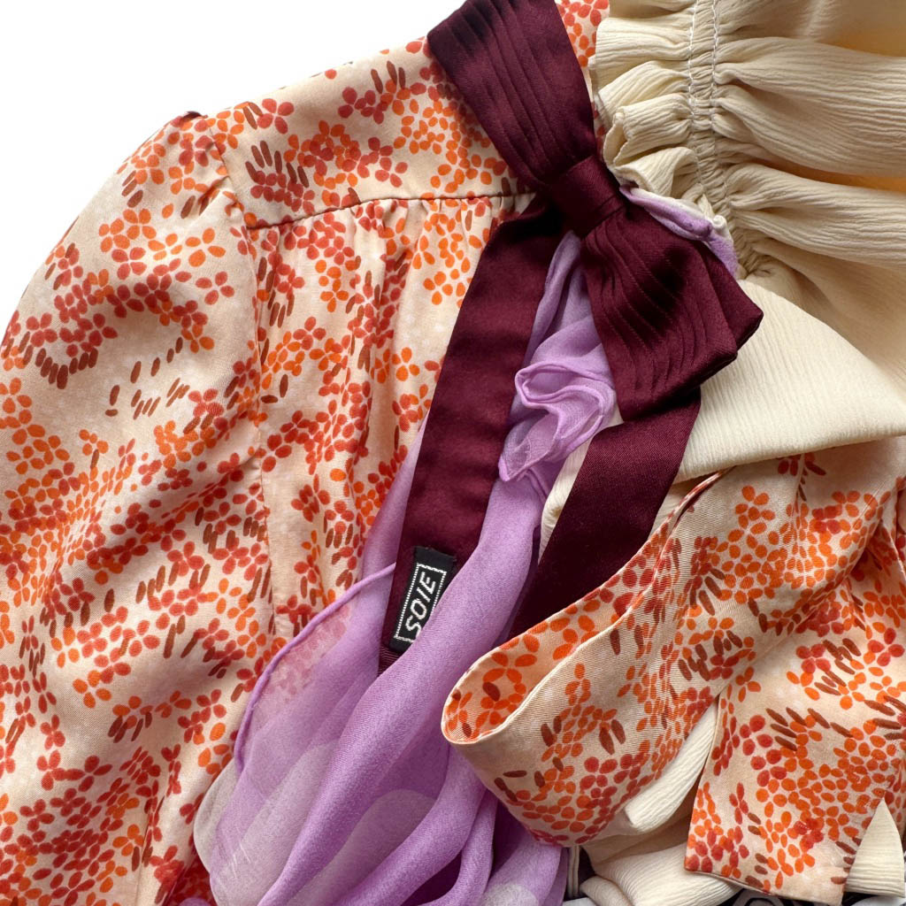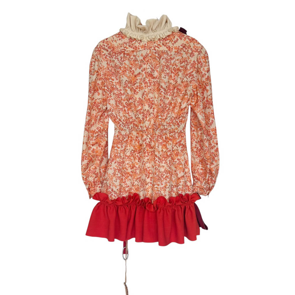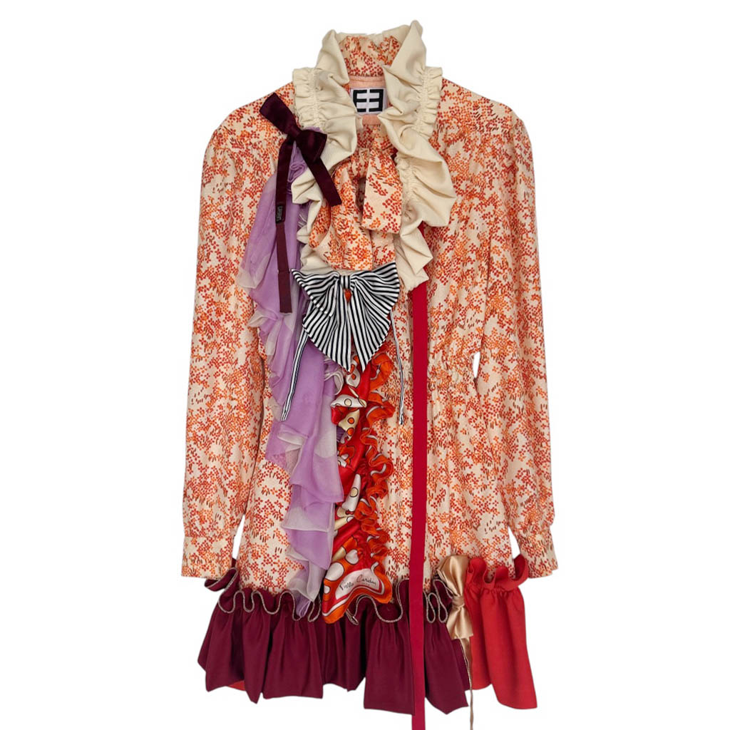 Mini robe soie orange QUALITY STREET N4 Elephant Paris Design Pièce unique, fabriquée à Paris 🇫🇷 Cette mini robe en soie orange imprimée est le fruit d’un travail d’upcycling minutieux, réalisé à partir d’une blouse en soie à lavallière des années 1 9 7 0, conçue à l’origine par une couturière de maison.Entièrement revisitée et modernisée, elle a été assemblée à la main avec des écharpes en soie et mousseline de soie vintage – dont une Pierre Cardin datant des années 1 9 7 0 – ainsi que divers nœuds papillon en soie et satin.Chaque élément a été pensé pour…